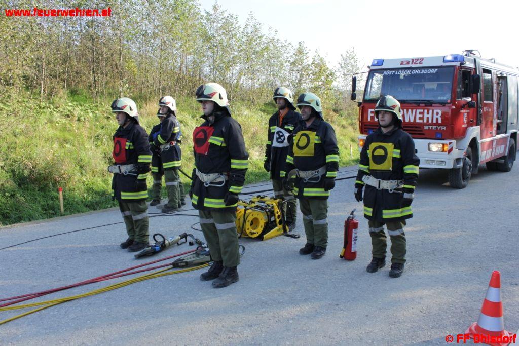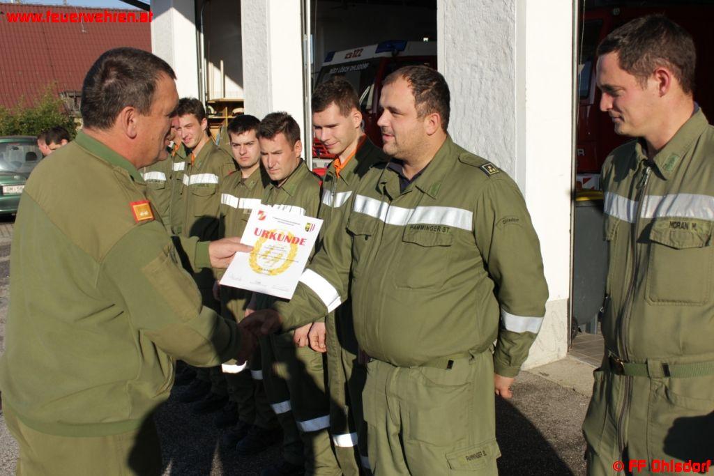Zur Abnahme der Technischen- Hilfeleistungsprüfung fanden sich zahlreiche Kameraden und das Bewerterteam des Bezirkes Gmunden am Samstag, den 20. Oktober 2012 in Ohlsdorf ein. In den Stufen Bronze, Silber und erstmals in Gold traten insgesamt 17 Kameraden an um die Abzeichen zu erlangen. Mehrere Wochen des Trainings gingen voran und prägten den starken Zusammenhalt der Feuerwehr. Die Technische- Hilfeleistungsprüfung besteht aus zwei bzw. drei Teilen. Jeder Teilnehmer muss zwei Gegenstände aus den Fahrzeugen bei geschlossenen Türen andeuten wo diese gelagert sind. Eine Handbreite daneben ist gerade noch erlaubt.