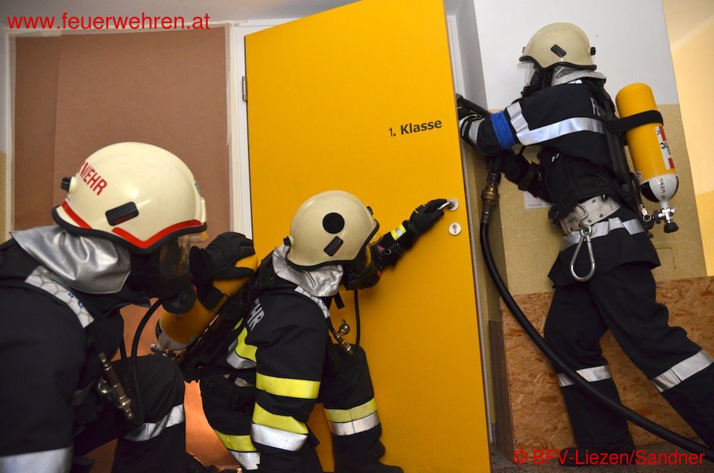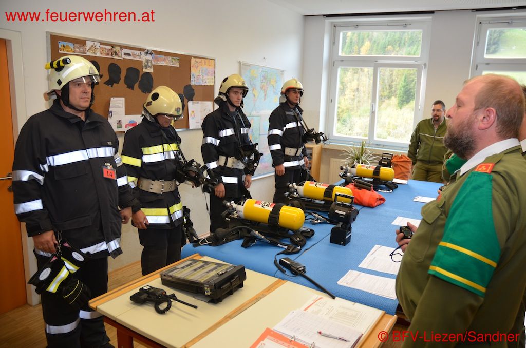 Hohes Niveau zeigten die Atemschutzgeräteträger am 12. Oktober 2013 bei der Atemschutzleistungsprüfung (ASLP) in Weißenbach an der Enns. Insgesamt 17 Atemschutztrupps, davon 2 Gästegruppen aus dem BFV Graz/Umgebung sowie aus Gänserndorf (NÖ), bestehend aus jeweils einem Gruppenkommandanten und 3 Atemschutzgeräteträgern, stellten sich der Herausforderung, das Atemschutzleistungsabzeichen (ASLA) in Bronze zu erwerben.