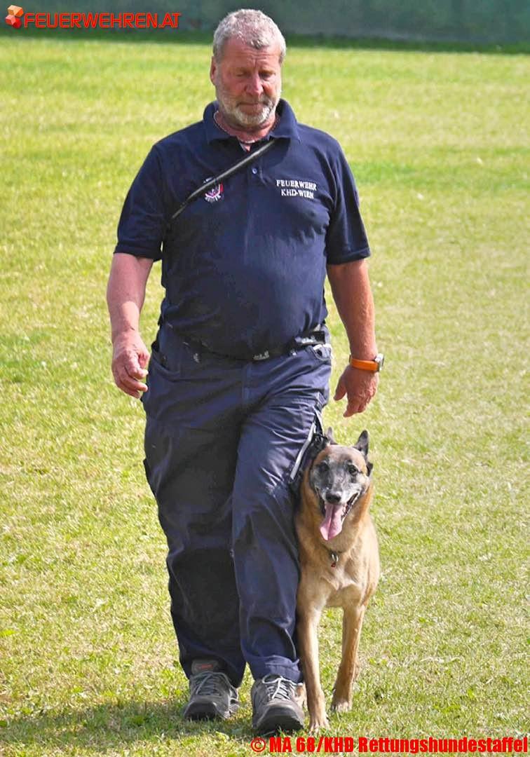 Mit seiner 6jährigen belgischen Schäferhündin Dora hat Peter Schüler vom Katastrophenhilfsdienst Wien (KHD) zum zweiten Mal Gold bei der IRO Weltmeisterschaft für Rettungshunde in Fährtenarbeit geholt.