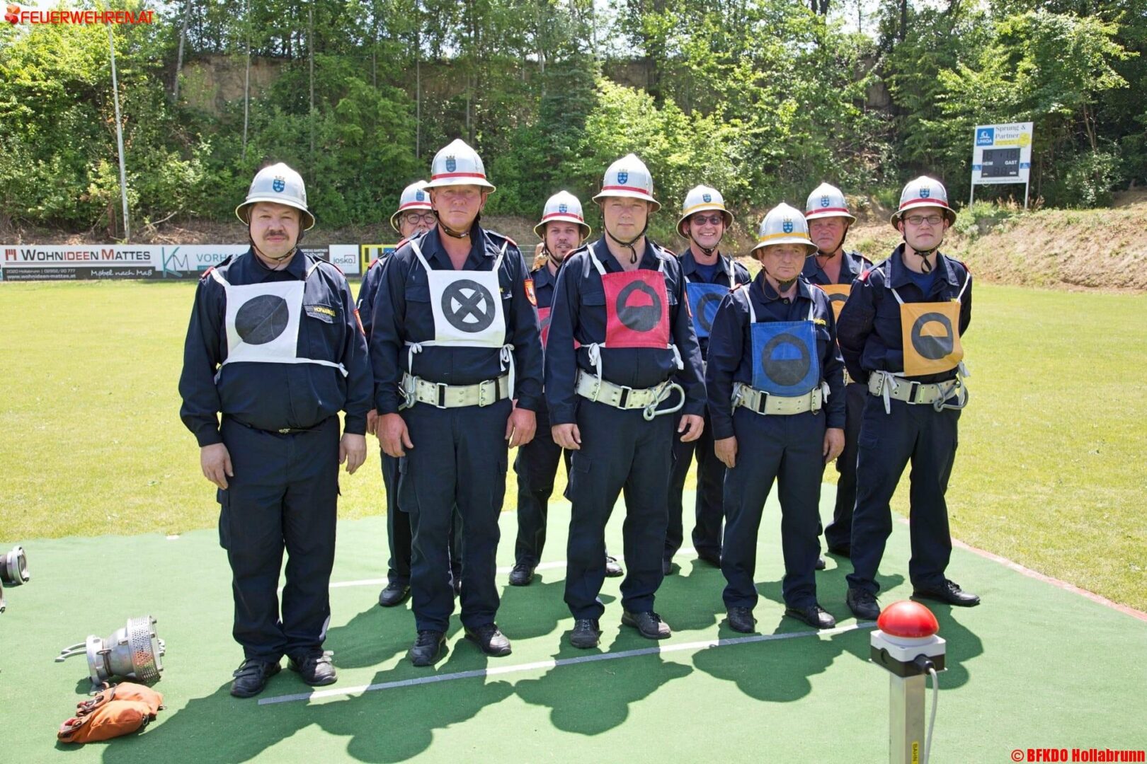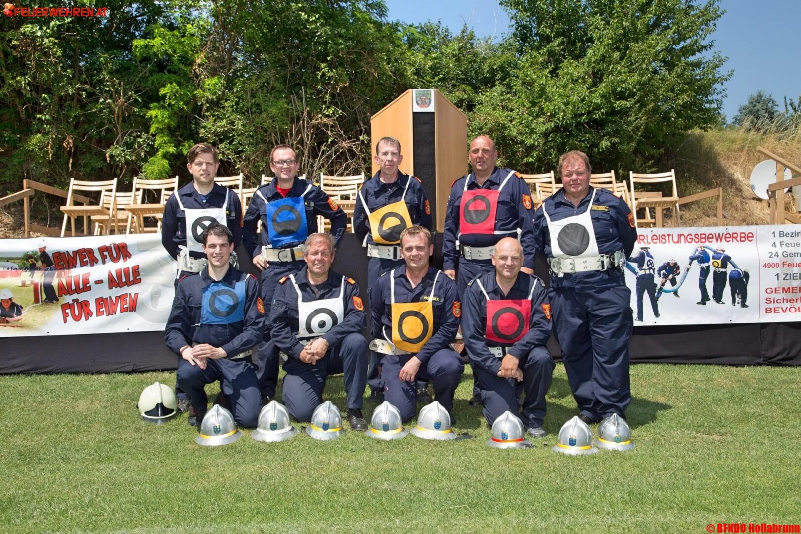 Viele hochrangige Feuerwehrfunktionäre waren auch als Teilnehmer mit dabei. Es traten Funktionärsgruppen aus den Feuerwehrabschnitten Hollabrunn und Ravelsbach und eine Gruppe des Bezirksfeuerwehrkommandos an. Auch der ehemalige Abschnittsfeuerwehrkommandant und Leiter der Katastrophenhilfsdienstbereit EBR Alfred Schönhofer kämpfte in der schwierigen Position als Wassertruppführer ebenfalls gegen die Hitze an, gleichzeitig stellte Alfred den ältesten Teilnehmer bei diesen Bewerben.