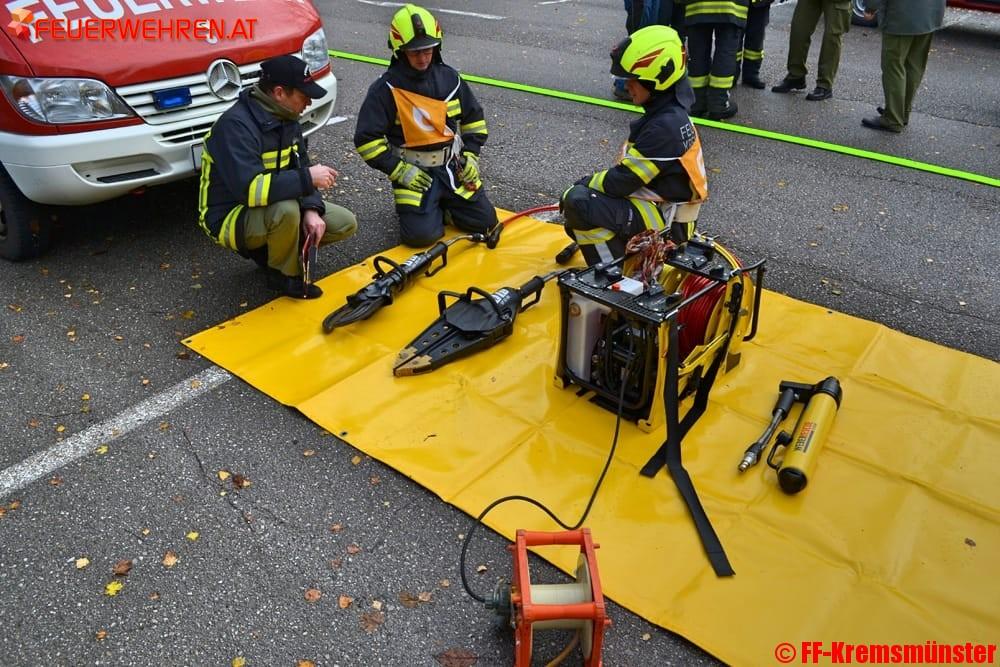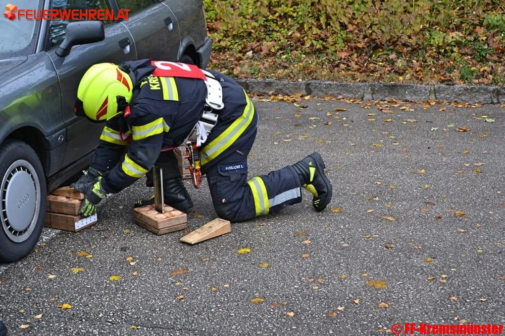 Nach wochenlangem Training war es am Samstagvormittag soweit. Drei Gruppen der Feuerwehr Kremsmünster traten zur Abnahme der technischen Hilfeleistungs-Prüfung am Stiftsparkplatz an.