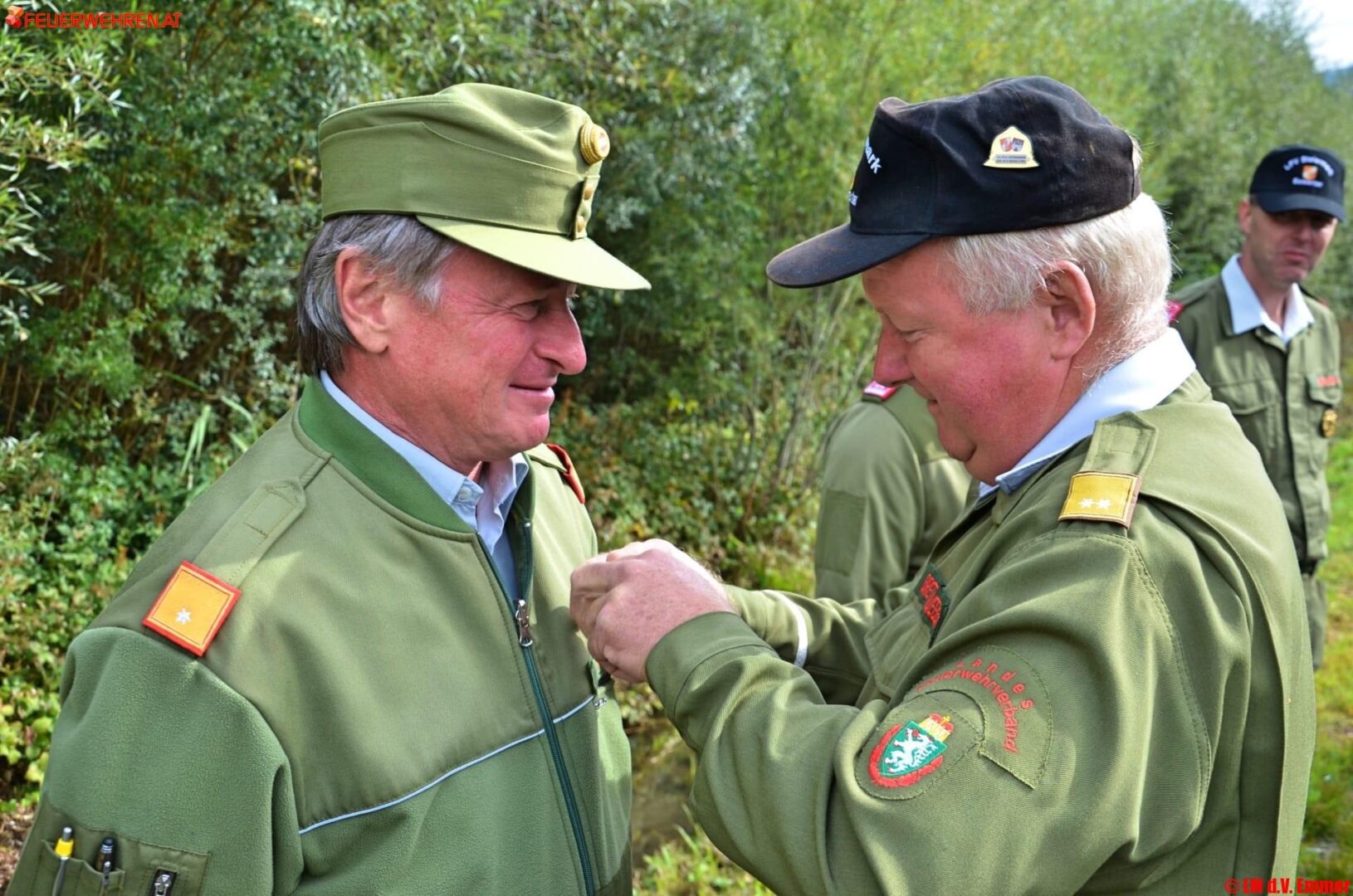 Im Anschluss an die Überreichung der verdienten Abzeichen an die Kameraden der Wehr oblag es Hauptbewerter Bretterklieber, ABI Franz Haberl – BDLP-Bewerter seit erster Stunde – mit der Bewerterspange für mehr als 50-malige Tätigkeit auszuzeichnen.