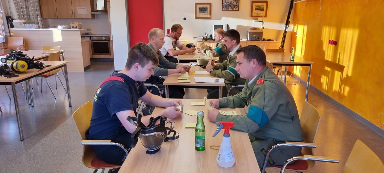 Fünf Trupps in Silber und sieben Trupps in Gold stellten sich der Herausforderung in den Disziplinen Maske zerlegen und zusammenbauen, sowie der anschließenden Dichtprüfung mittels ATS-Prüfkoffer. Bei der nächsten Station mussten Fragen aus dem Atemschutzwesen beantwortet werden. Die Hindernis- und Rettungsstrecke stellte den herausfordernden Teil der Prüfung dar. Nachdem die Hindernisse überwunden waren, musste der Atemschutztrupp eine verletzte Person aus dem Gefahrenbereich retten und an einem definierten Sammelplatz ablegen. Die körperliche Anstrengung war den Teilnehmern beim gegenseitigen An- und Abkuppeln des Lungenautomaten an den Rettungsanschluss ins Gesicht geschrieben, bevor es an die letzte Station des Bewerbs ging, den simulierten Flaschenwechsel, der nach einer vorgegebenen Reihenfolge abzuarbeiten war.