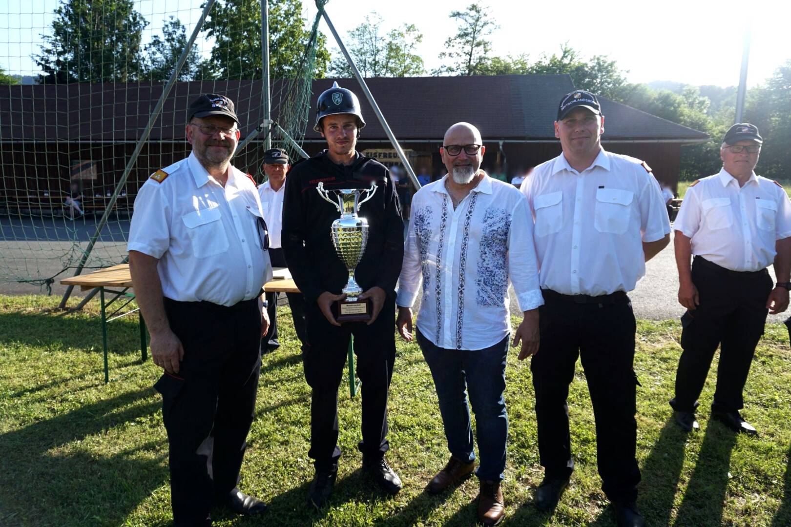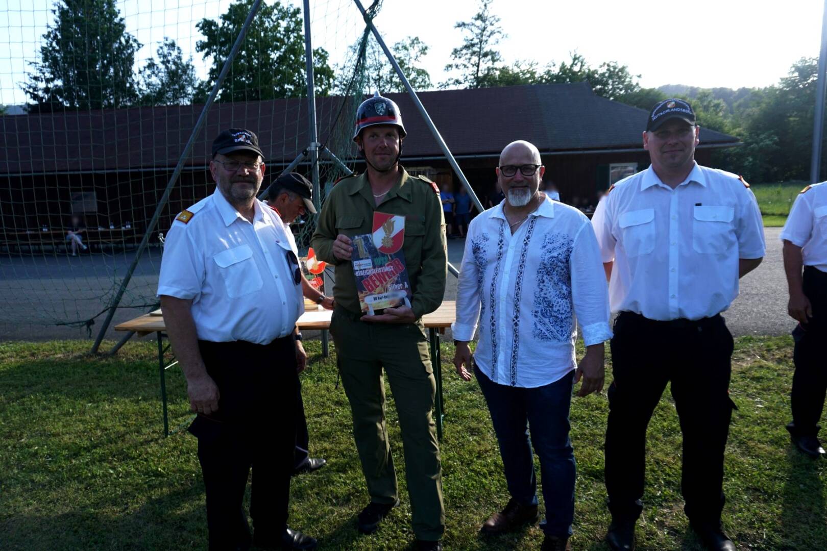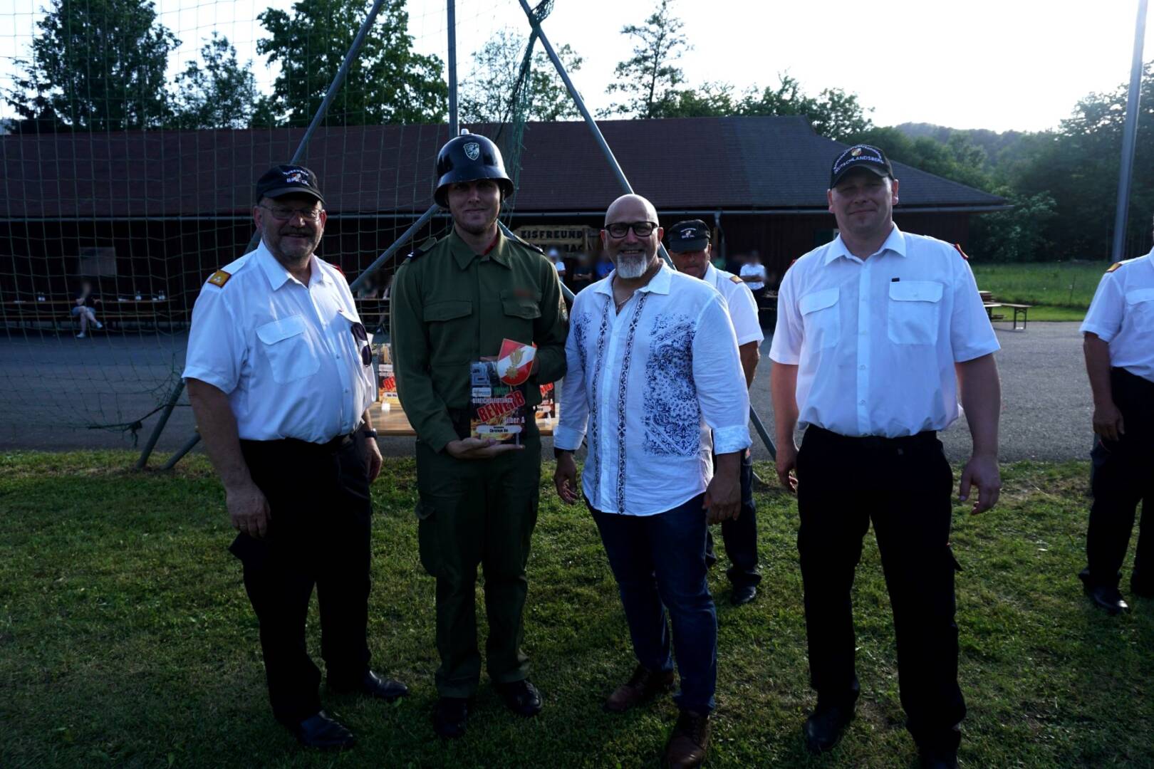 Bevor die eigentliche Siegerehrung begann, standen noch Ehrungen und Auszeichnungen verdienter Kameraden am Programm. OBI Frederik Harkam wurde mit der Bewerterspange in Silber für mehr als 10-malige Bewertertätigkeit ausgezeichnet. EABI Rudolf Hofer wurde als Bewerter verabschiedet und in Zuge dessen wurde ihm ein kleines Andenken für seine langjährige und verdienstvolle Tätigkeit als Bewerter überreicht.