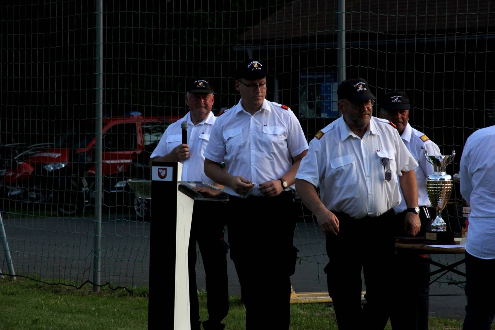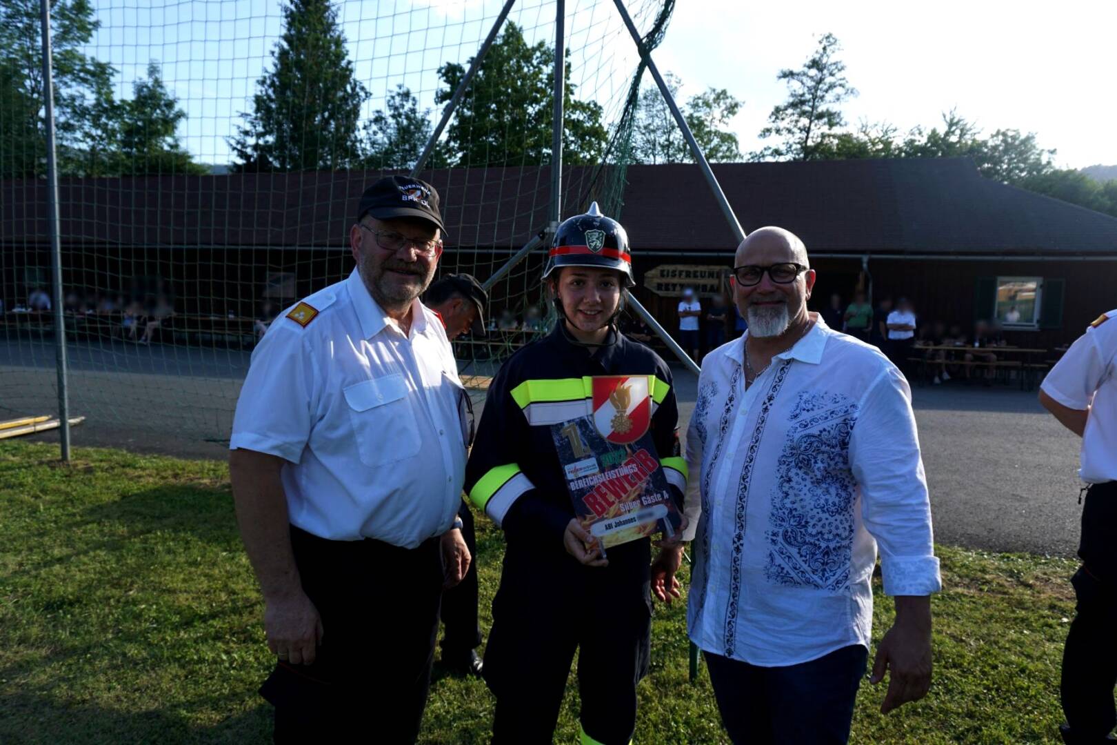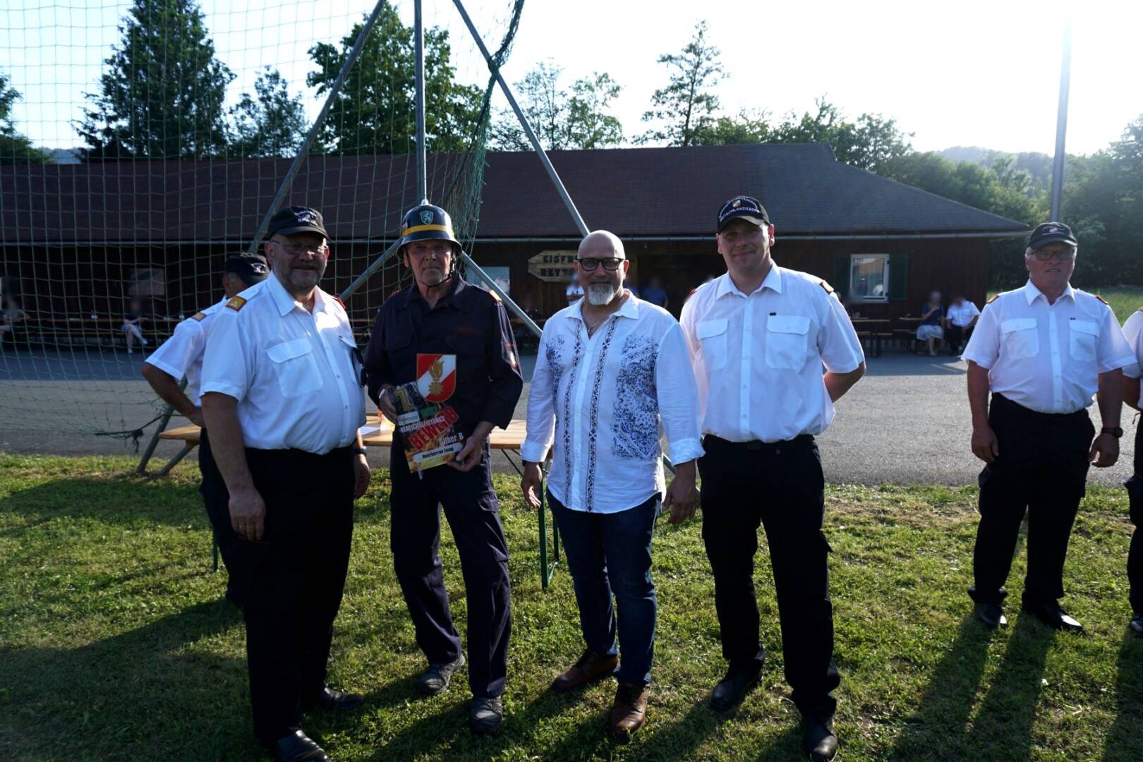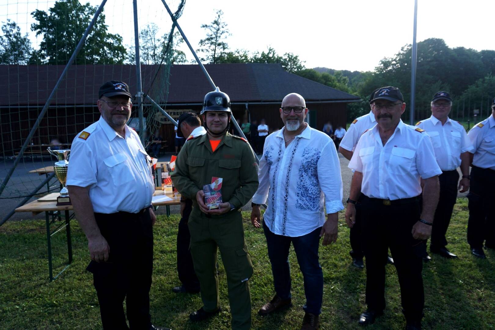 Bevor die eigentliche Siegerehrung begann, standen noch Ehrungen und Auszeichnungen verdienter Kameraden am Programm. OBI Frederik Harkam wurde mit der Bewerterspange in Silber für mehr als 10-malige Bewertertätigkeit ausgezeichnet. EABI Rudolf Hofer wurde als Bewerter verabschiedet und in Zuge dessen wurde ihm ein kleines Andenken für seine langjährige und verdienstvolle Tätigkeit als Bewerter überreicht.