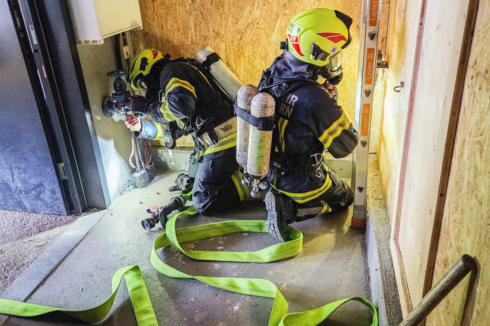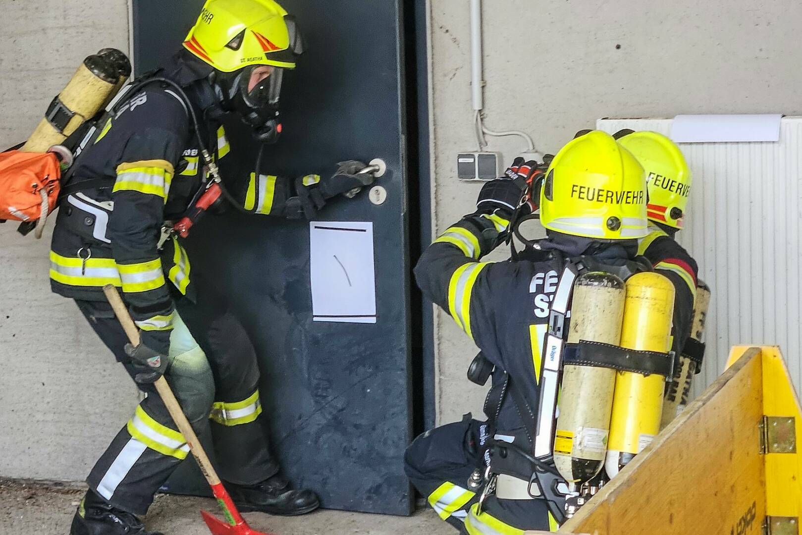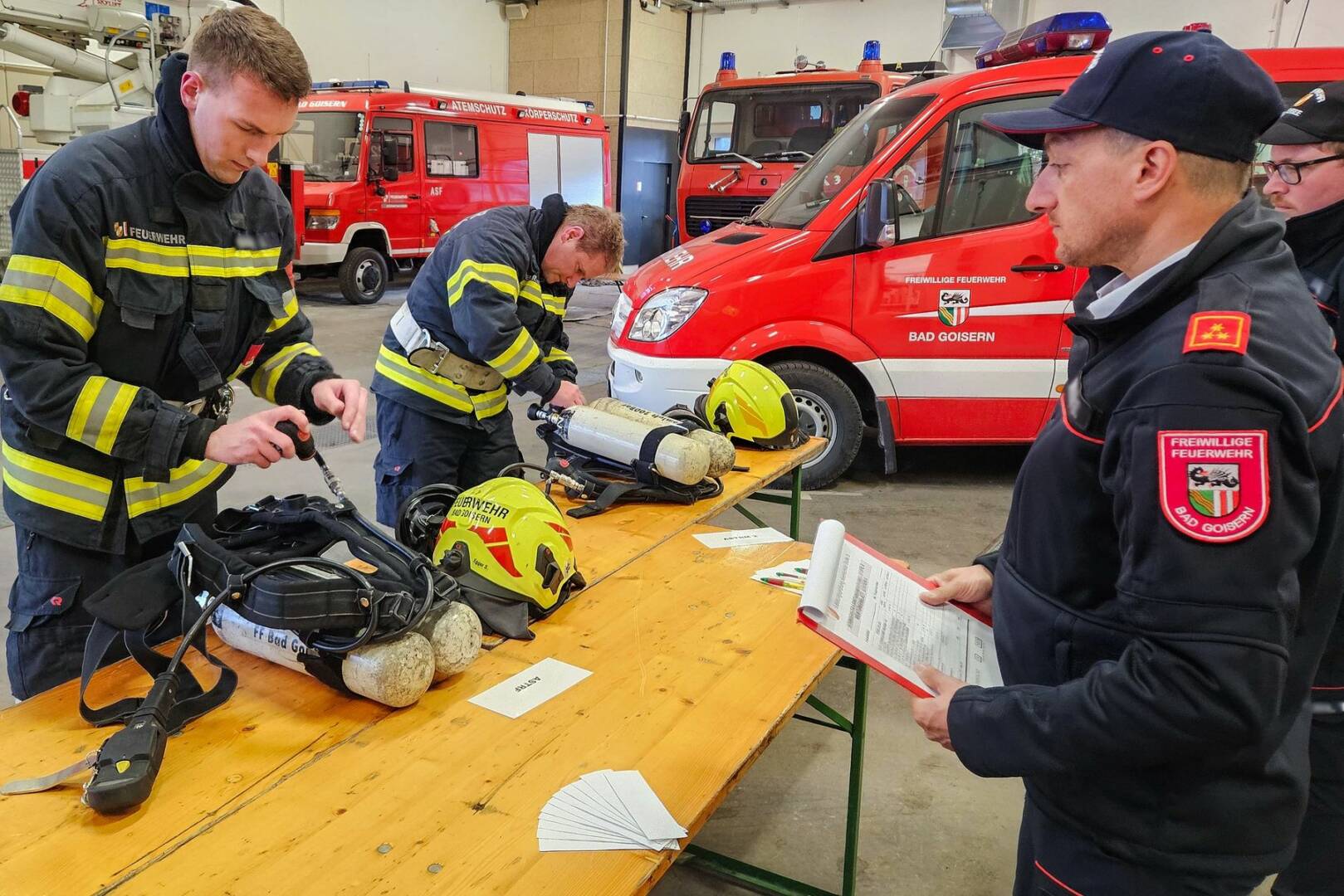 Umfangreiches Fachwissen in Theorie und Praxis wurde dabei den Teilnehmern abverlangt. Vom Anlegen des Pressluftatmers, einer Personenrettung, dem Passieren einer Hindernisstrecke bis hin zur richtigen Wartung der Atemschutzausrüstung und vielem mehr reichten die Prüfungsinhalte. Nach ausgiebiger Vorbereitung konnten schließlich alle Teilnehmer ihr Antreten erfolgreich abschließen.