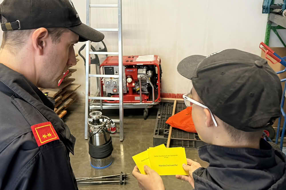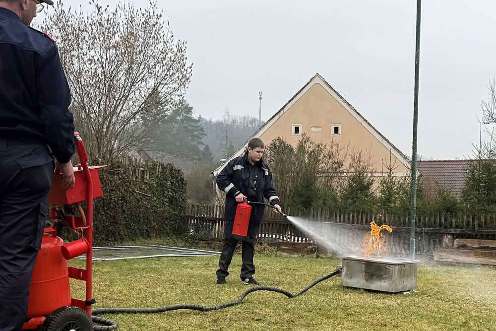 Neben den Prüfungen gab es ein spannendes Rahmenprogramm. Die Jugendlichen durften mit einem Feuerlöscher ein Feuer bekämpfen und lernten bei einem Experiment die Gefahren einer explodierenden Haarspraydose kennen. Eine beeindruckende Demonstration zeigte, wie gefährlich es ist, brennendes Öl mit Wasser zu löschen.