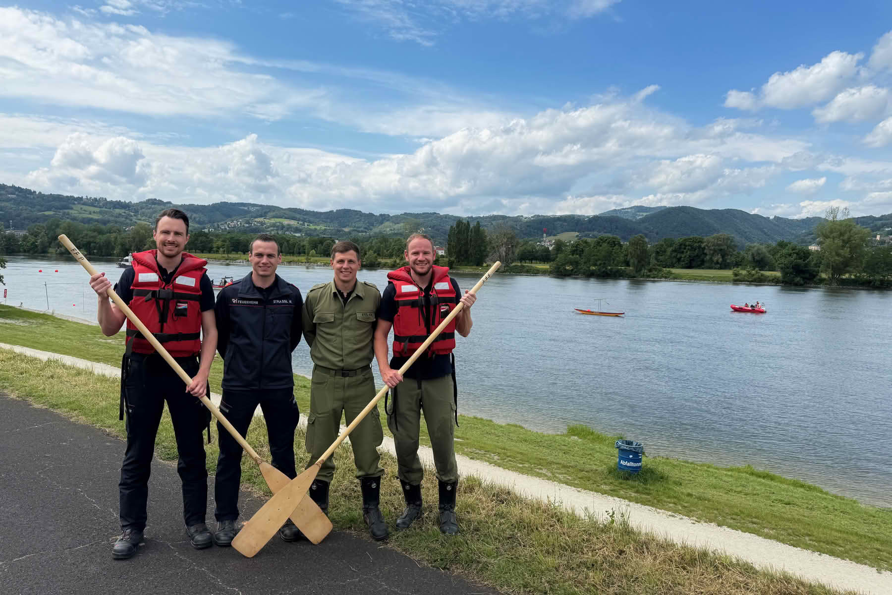 Unter den insgesamt 51 angetretenen Teilnehmerinnen und Teilnehmern um den Wasserwehrleistungsbewerb in Gold waren auch 7 Teilnehmer aus dem Bezirk Schärding dabei. Unsere Kommandomitglieder Christoph Etzl, Florian Kleinpötzl und Markus Straßl stellten sich ebenfalls nach mehrwöchiger Vorbereitung und einem 4-tägigen Lehrgang an der Landesfeuerwehrschule in Linz, dem Wasserdienstleistungsbewerb in Gold. Alle 3 Besatzungen konnten sowohl die Fragen zum Feuerwehrwesen, die Knotenkunde und den Parcours auf der Donau erfolgreich absolvieren.