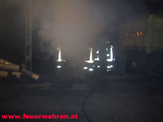 Unter Einsatz von leichtem Atemschutz und Hochdruckrohren konnte ein ausbreiten des Brandes verhindert werden. Weiters wurden Lkw´s aus dem Risikobereich entfernt und sichergestellt.