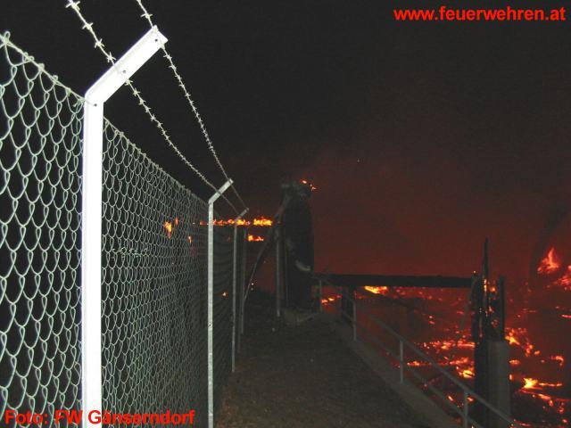 Weiters galt es auch einen am Gelände befindliche Tankstelle sowie den angrenzenden Hochleithenwald vor einem Übergreifen der Flammen zu bewahren!