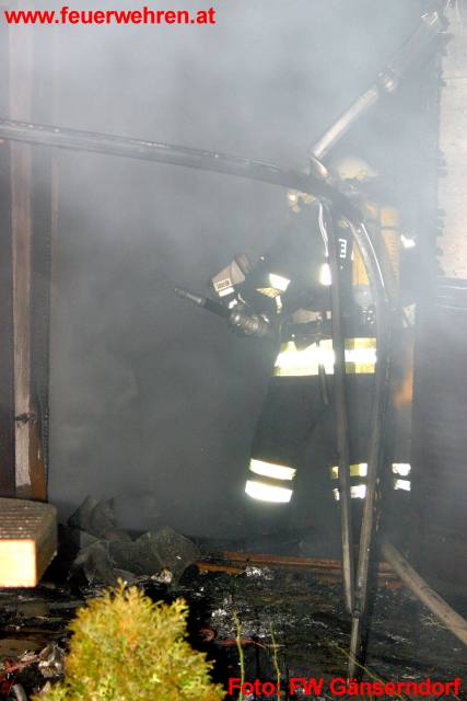 Der Sachschaden ist enorm. Die Brandursache ist Teil von Ermittlungen der anwesenden Gendarmeriekräfte. Die Feuerwehr Gänserndorf rückte innerhalb von 2 Monaten nun schon zum 3 mal zu dieser Einsatzadresse aus. 2 mal wurde die ans Wohnhaus angrenzde Garage Opfer der Flammen…Siehe EN XX 2004!