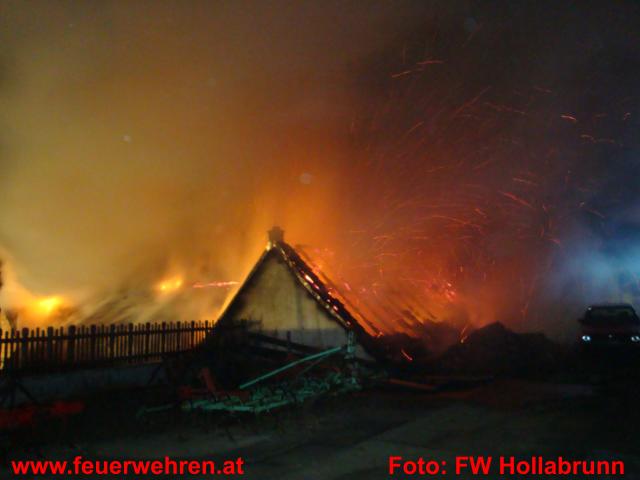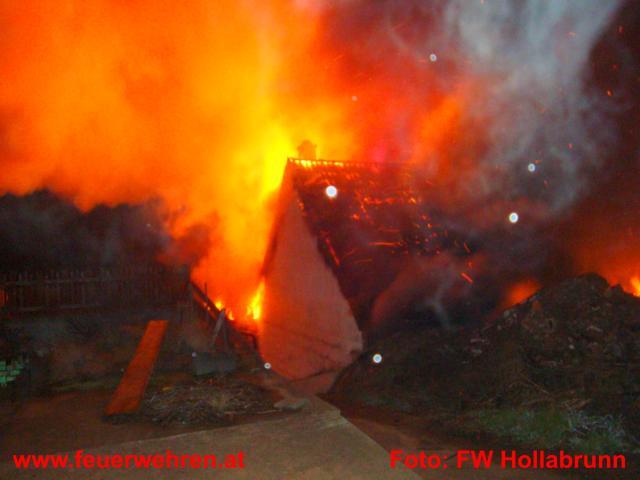 Brand Aus wurde um 21:00 Uhr gemeldet und die 6 Fahrzeuge der umliegenden Wehren rückten nach den Aufräumarbeiten wieder ein. Zwei Fahrzeuge der Feuerwehr Klein Höflein bleiben zunächst zur Brandsicherheitswache vor Ort.