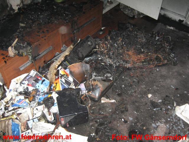 Zimmerbrand durch defekten Fernseher │ © FF Gänserndorf