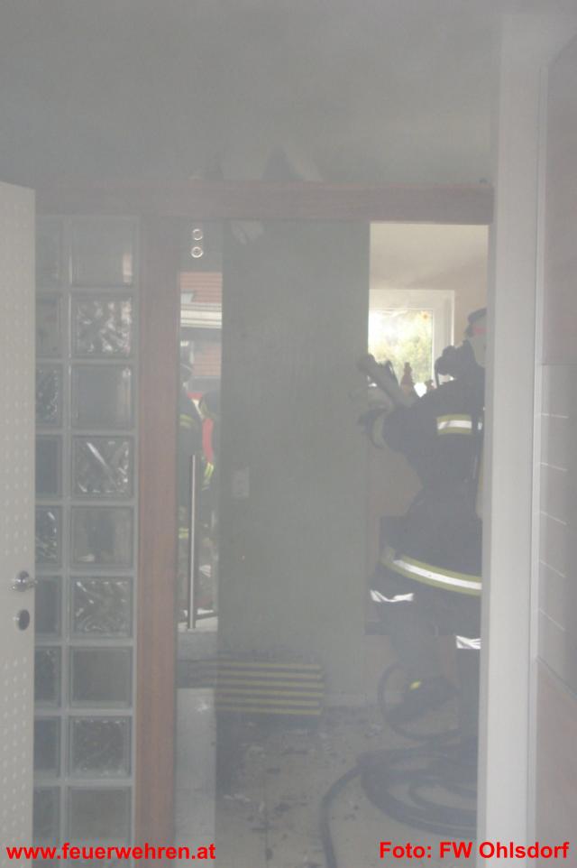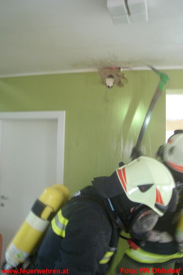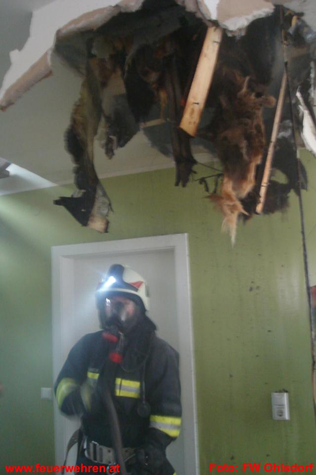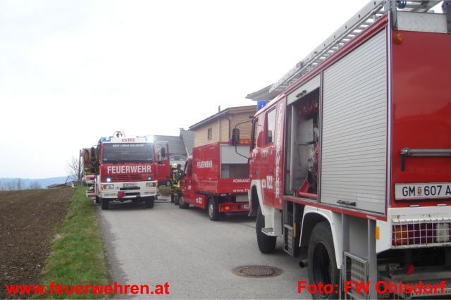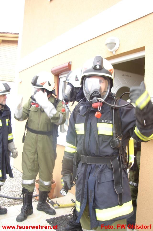 Am Ostermontag wurden die Ohlsdorfer Feuerwehren um 13:13 Uhr von der OÖ Landeswarnzentrale zu einem Wohnhausbrand alarmiert. Einsatzleiter HBI Ernst Pesendorfer stellte am Einsatzort anfangs einen Brand im Bereich eines Kamines fest, wodurch ein ganzes Wohnhaus verraucht war. Mit schwerem Atemschutz versehen begann der erste Atemschutztrupp den Brand zu löschen. Zeitgleich wurde von der Ohlsdorfer Wehr und der FF Aurachkirchen noch ein zusätzlicher Trupp in das Haus bzw. auf das Dach beordert, da dort ebenfalls enormer Rauch aufstieg.