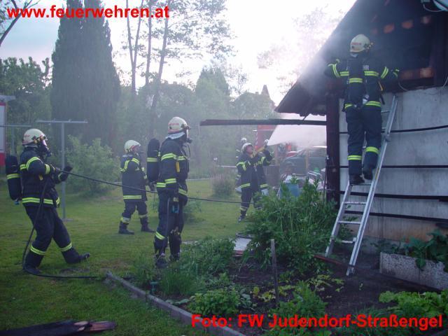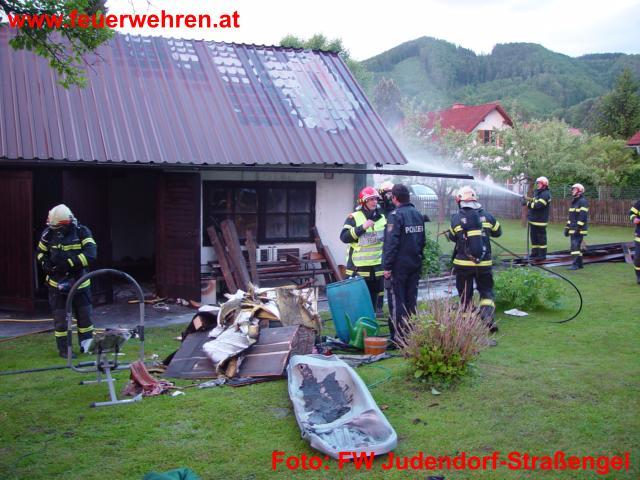 Die Feuerwehr Judendorf-Straßengel wird am 20.05.2010, um 19.38 Uhr durch die Bezirks-Alarmzentrale Florian Graz-Umgebung zu einem Brandeinsatz mit dem Einsatzbefehl „Wirtschaftsgebäudebrand in der Plankenwartherstraße“ alarmiert. Bereits bei der Anfahrt weist die aufsteigende Rauchsäule den Hilfskräften unter der Leitung von Feuerwehrkommandant Hauptbrandinspektor Bernhard Konrad den Weg zum Einsatzort. Im Brandobjekt, ein Nebengebäude eines Wohnhauses, gerät aus unbekannter Ursache die Zwischendecke im Bereich der Sauna in Brand.