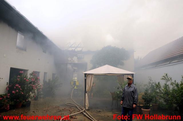 Vermutlich durch einen Blitzschlag wurde in Schöngrabern am 6.7.2010 um ca. 11:50 Uhr ein Wirtschaftsgebäude in Brand gesetzt. Kurz nach dem Eintreffen der ersten Kräfte wurde auf Alarmstufe 4 erhöht und insgesamt 9 Feuerwehren eilten zum Einsatzort.