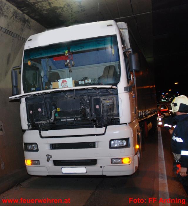 Beim Eintreffen der Einsatzkräfte und der Kontaktaufnahme mit der Tunnelwarte Ardning stellte sich heraus, dass es bei einem LKW zu einem Turboladerbrand und starker Rauchentwicklung gekommen war. Sofort wurden die nötigen Schritte (Aufbau einer Einsatzleitung, Vorbereiten der SKG-Geräte, Wärmebildkamera, Außenüberwachung, etc.) eingeleitet. Nach nochmaliger Absprache mit der Tunnelwarte konnte jedoch Entwarnung gegeben werden. Die Aufgabe der FF-Ardning und der FF-Frauenberg/Enns bestand noch darin, eine Kontrollfahrt und Besichtigung des LKW’s durchzuführen.