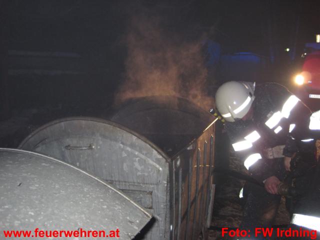 Die Feuerwehr Irdning wurde um 17:42 Uhr zu einem „Containerbrand“ im Ortszentrum alarmiert. 14 Mann rückten mit KDO, TLF A 2000, und LF A zur Einsatzadresse aus. Bei Erkunden der Lage durch den Einsatzleiter stellte sich schnell heraus, dass es sich nur um Feuer in einer Mülltonne handelte.
