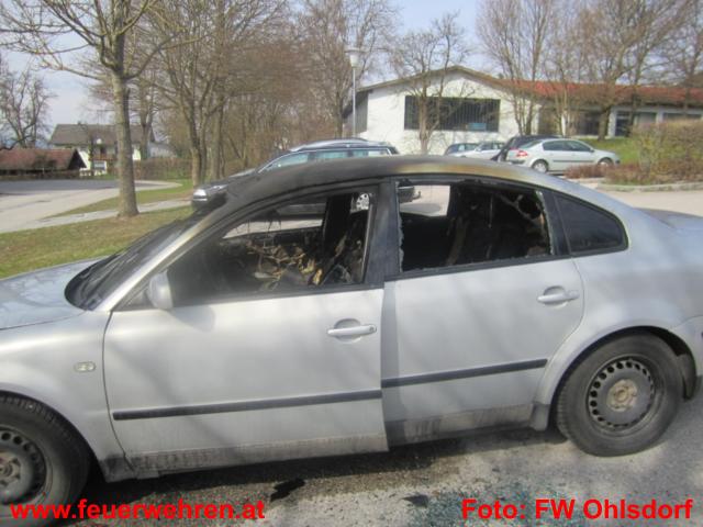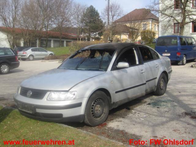 Zu einem Fahrzeugbrand wurde die Feuerwehr Ohlsdorf am Donnerstag, den 31. März 2011 um 12:30 Uhr zum Gemeindeamt Ohlsdorf alarmiert. Dort stand der Pkw einer Gemeindebediensteten am Parkplatz in Brand. Erste Löschversuche wurden durch einen Gemeindebediensteten, welcher aktives Mitglied bei der Feuerwehr Ohlsdorf ist, mittels Schaumlöscher durchgeführt.