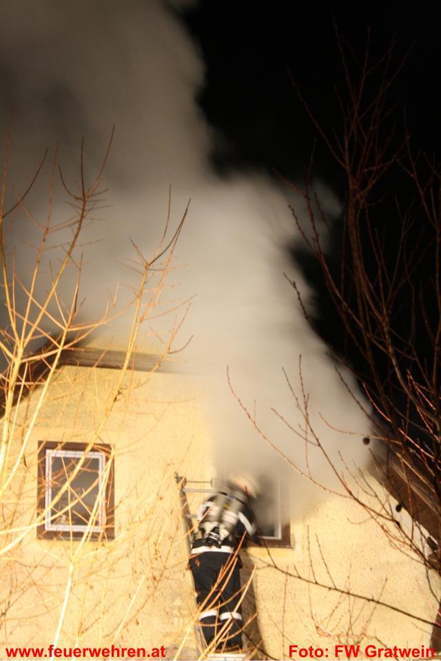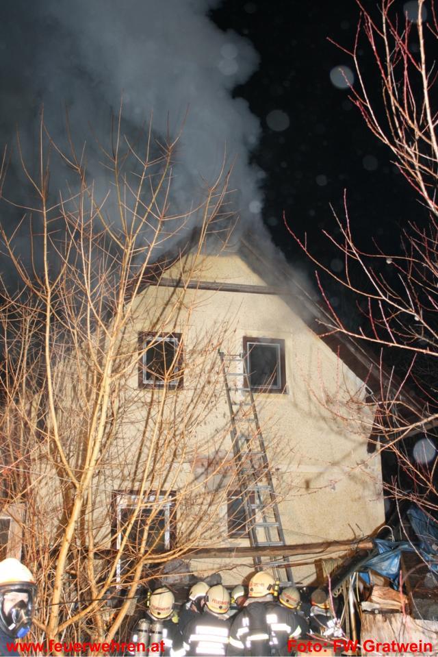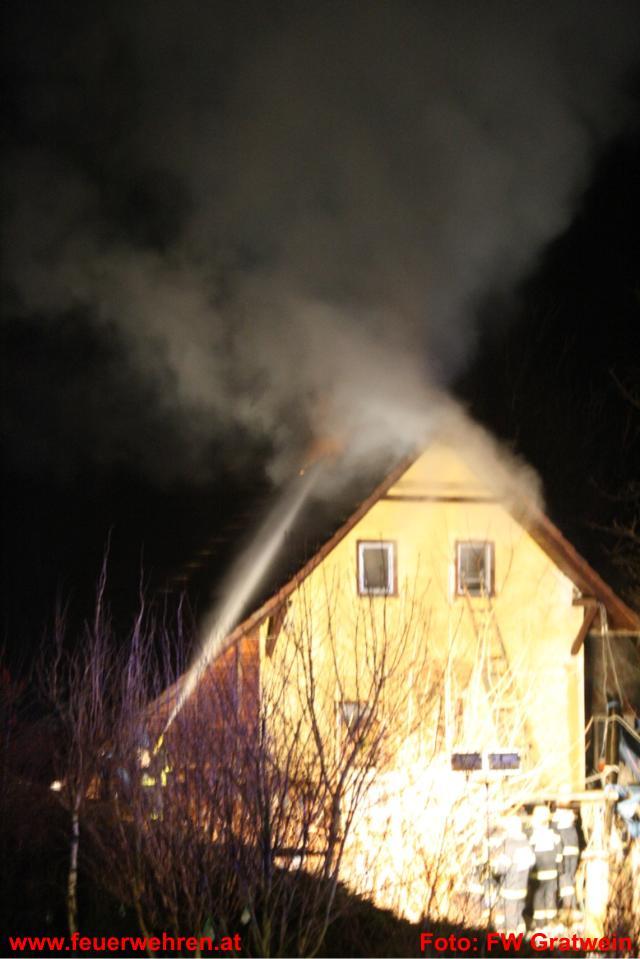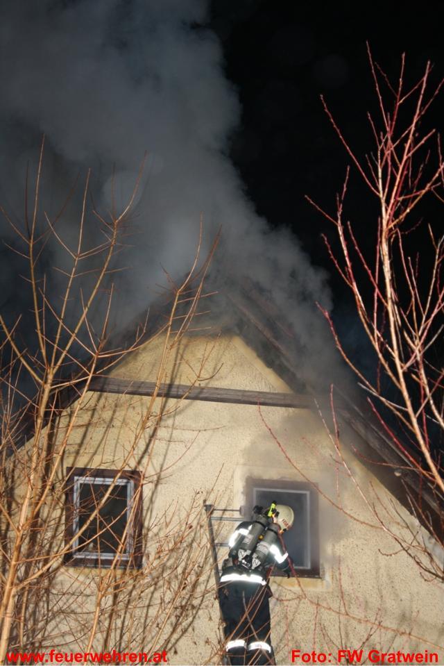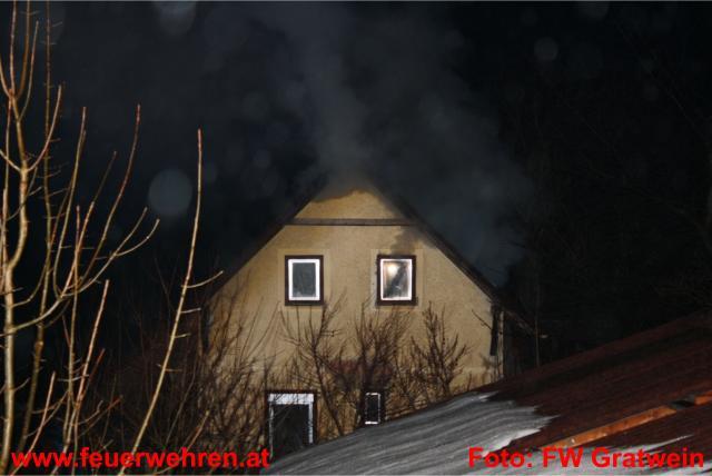 Die Feuerwehr Gratwein wurde am 15.02.2011 um 02.00 Uhr zu einem Dachstuhlbrand am Anton Bauer Weg alarmiert. Am Einsatzort eingetroffen fand der Einsatzleiter OBI Johann Glauninger folgende Situation vor: Der Brand im Gebäude erstreckte sich über das Stiegenhaus und den ersten Stock bis in den Dachstuhl. Da der Einsatzleiter erkannte, dass die Feuerwehr Gratwein mit den eigenen Kräften nicht das Auslangen finden würde, ließ er die Freiwillige Feuerwehr Judendorf-Strassengel nachalarmieren.