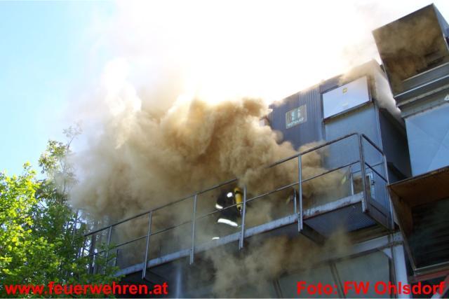 Zu einem Brand in einer Filteranlage wurden die Feuerwehren Ohlsdorf und Aurachkirchen am Montagnachmittag, den 09. Mai 2011 gegen 14:30 Uhr nach Peiskam zur Großtischlerei GASPO Sportartikel alarmiert. Aus bislang noch unbekannter Ursache brach in der Filteranlage der Absauganlage ein Brand aus. Sofort wurde seitens der Firmenleitung, welche den Brand entdeckte, die Feuerwehren alarmiert.