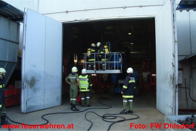 Bereits zum zweiten Brandeinsatz in einem Gewerbebetrieb wurden die Feuerwehren Ohlsdorf und Aurachkirchen am 09. Mai 2011 um 19:36 Uhr alarmiert. Da noch zahlreiche Kameraden im Gerätehaus der Feuerwehr Ohlsdorf Arbeiten vom ersten Brandeinsatz durchführten, konnte das erste Fahrzeug nach wenigen Sekunden bereits ausrücken – die anderen drei Fahrzeuge folgten im 30 Sekunden Takt.
