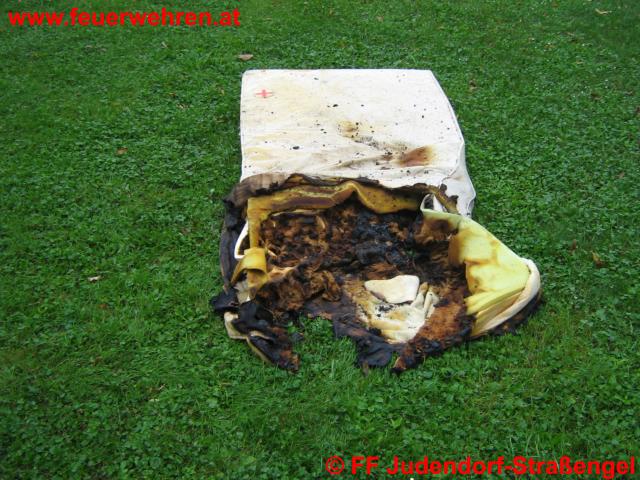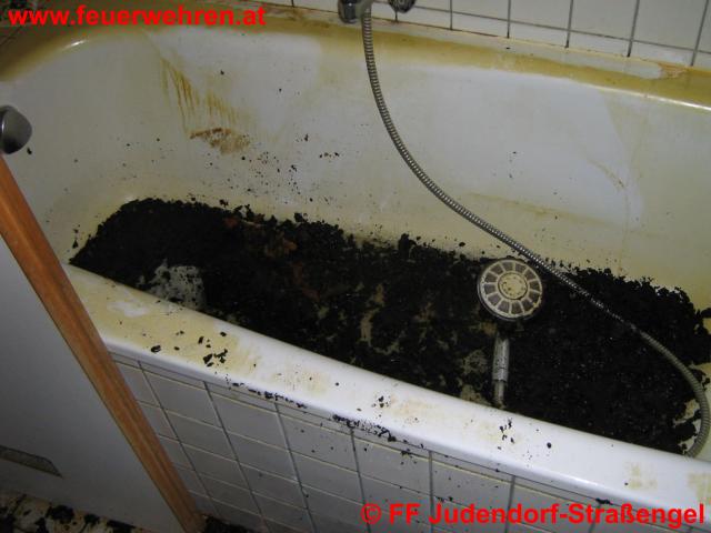 Das Brandgut, eine brennende Matratze, wird anschließend aus der Badewanne ins Freie gebracht und dort endgültig gelöscht. Mit einem Hochdrucklüfter wird der beißende Brandrauch zuerst aus der Wohnung, später aus dem Stiegenhaus geblasen. Die darüber liegende Wohnung wird auf eine allfällige Ausdehnung des Brandrauches kontrolliert. Lediglich der beißende Gestank kann festgestellt werden.