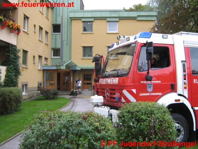Die Feuerwehr Judendorf-Straßengel, Bezirk Graz-Umgebung, wird am Samstag, den 24.09.2011, um 08.10 Uhr durch die Bezirks-Alarmzentrale zu einem Brandeinsatz mit dem Einsatzbefehl „Wohnungsbrand in der Rosegger Allee“ alarmiert. Von einigen Hausbewohnern eines Mehrparteienwohnhauses wird die Feuerwehr in Empfang genommen. Laut deren Aussage sollen sich noch zwei Personen in der von außen hin sichtbar verrauchten Wohnung befinden. Bei der Erkundung schlägt dem Einsatzleiter dichter Rauch entgegen. Sofort befiehlt er seinem ausgerüsteten Atemschutztrupp, in die Wohnung vorzugehen um die beiden Personen in der Wohnung aufzuspüren. Doch noch vor dem Betreten der Wohnung durch den Atemschutztrupp wird die Tür von innen verschlossen. Durch kräftiges Klopfen gegen die Tür wird diese wieder aufgesperrt.