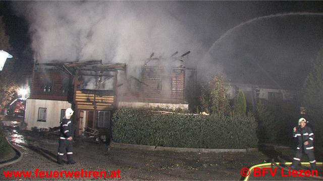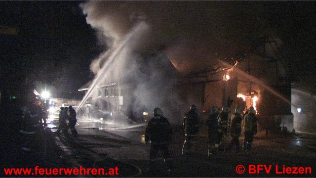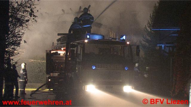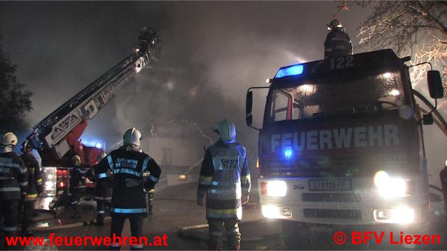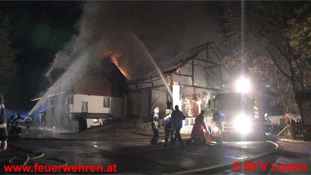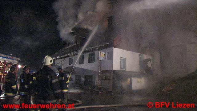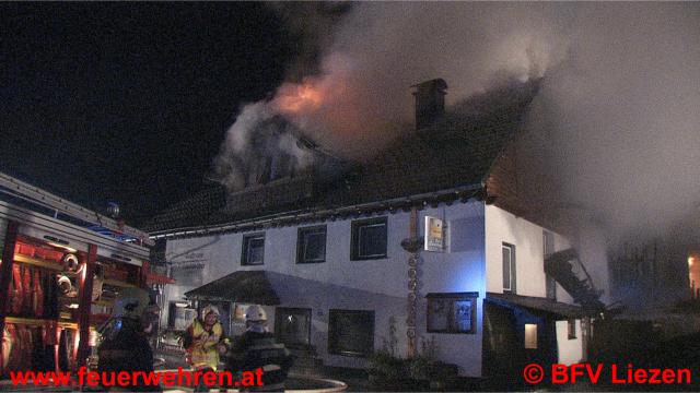 Seit den frühen Morgenstunden steht ein gutes Dutzend Feuerwehren der Abschnitte 10 (Bad Mitterndorf), 09 (Bad Aussee) und 03 (Irdning) mit rund 140 Mann im Großeinsatz. Mitten im Ortszentrum steht das einzig noch verbliebene Gasthaus des Ortes in Brand, ein angrenzendes Wirtschaftsgebäude steht in Vollbrand, in dem der Brand aus noch ungeklärter Ursache auch ausgebrochen sein dürfte.