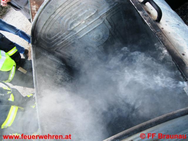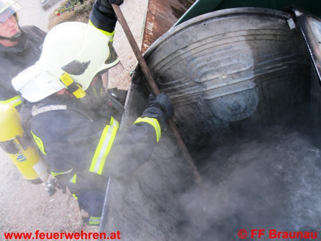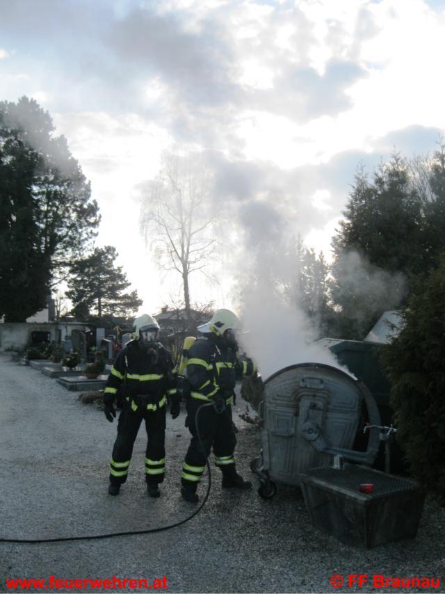 Aus derzeit ungeklärter Ursache geriet ein Abfallcontainer mit Restmüll (abgebrannte Kerzen, etc.) in Brand. Die unverzüglich nach Alarmeingang ausrückenden Kräfte der Feuerwehr Braunau stellten beim Eintreffen am Einsatzort einen Vollbrand des Abfallcontainers fest.