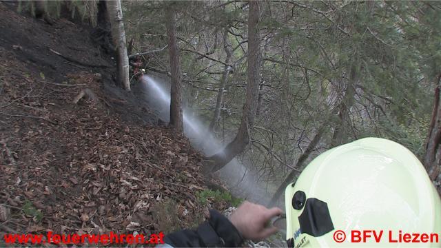 So geschehen neben Rottenmann und Bad Aussee auch im Löschbereich der Feuerwehr Wörschachwald. In 990 Metern Seehöhe wollte ein Landwirt eine Böschung am Waldrand kontrolliert abheizen. Durch den anfachenden, vorherrschenden Fönwind aus Osten geriet das Feuer jedoch rasch außer Kontrolle und binnen kürzester Zeit stand ein kleines Waldstück in schwer zugänglichem Bereich in Brand. Die große Problematik für die anrückenden Feuerwehren bestand zum Einen darin, dass keine Löschwasserentnahmestelle an der Einsatzstelle zur Verfügung stand, zum Anderen konnten Löschangriffe in dem steilen Gelände nicht ohne weiteres vorgenommen werden.