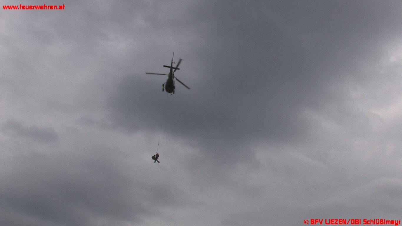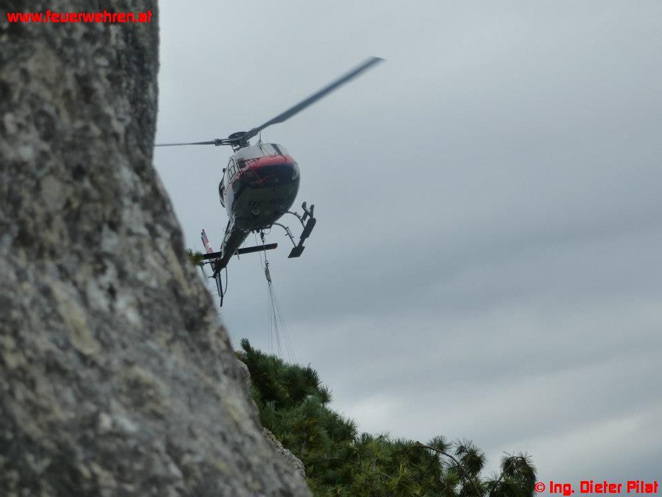 Erste Löschversuche des BMI-Hubschraubers schlugen fehl, da ein Steuerungskabel am Bambi-Set gerissen war und somit die Menge im Löschbehälter bei der Wasseraufnahme nicht mehr reguliert werden konnte. Somit sprengte der Hubschrauber das Tragseil des bereits zu schweren Löschbehälters ab und flog aufgrund der fortgeschrittenen Dunkelheit wieder nach Graz zurück.