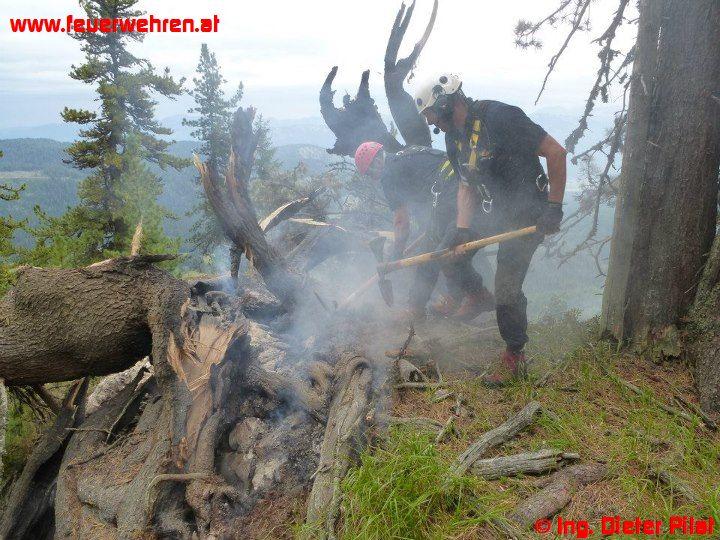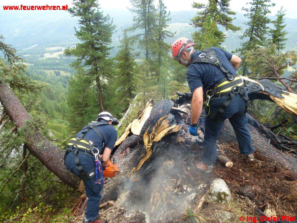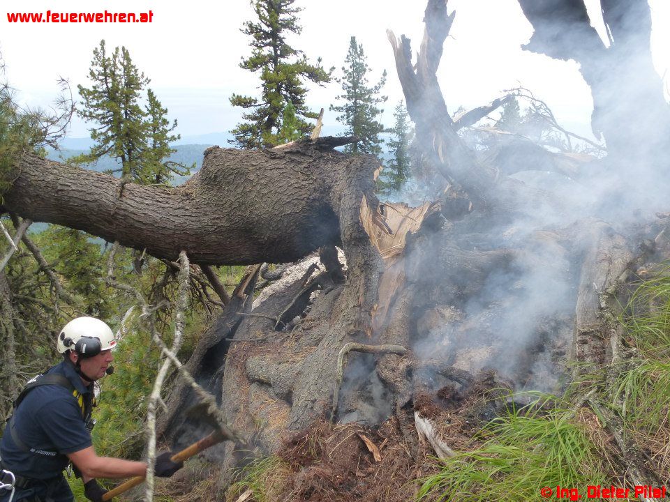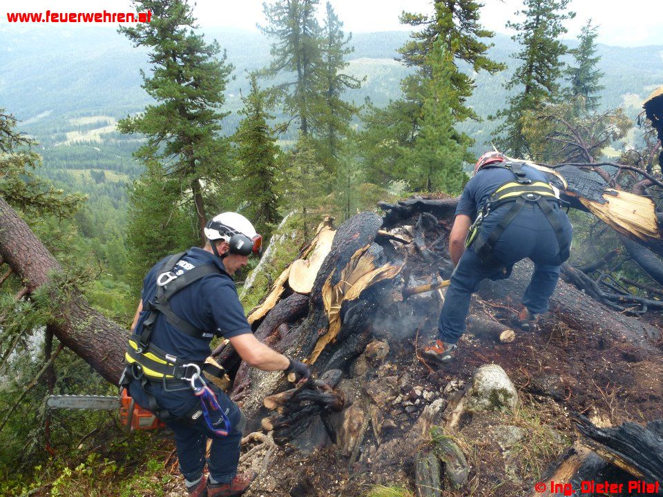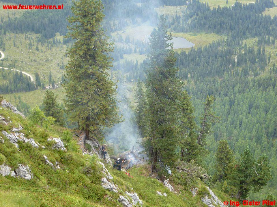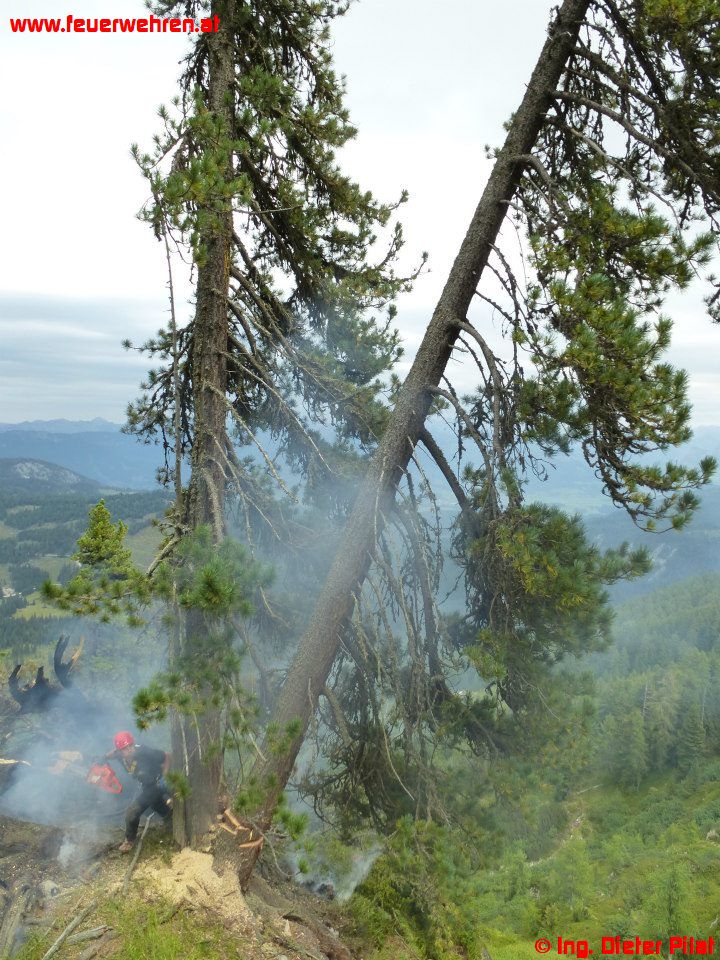 Gestern bemerkten Augenzeugen einen kleinen Waldbrand auf der Nordseite der „Kammspitze“ und setzten einen Notruf ab. Nach Alarmierung der ortszuständigen Feuerwehr Gröbming rückte diese mit dem MTF zur Lageerkundung zum Einsatzort ab. Die Lokalisierung der Brandstelle wurde mit Hilfe einer Hüttenwirtin der „Viehbergalm“ vorgenommen. Nachdem die Position bekannt war, flog eine Maschine des BMI mit dem Berechsflugdienstbeauftragten BI Ing. Josef Fritz die Stelle ab, die Lageerkundung ergab, dass zwei Bäume in Brand stehen, vermutliche Brandursache: Blitzschlag.