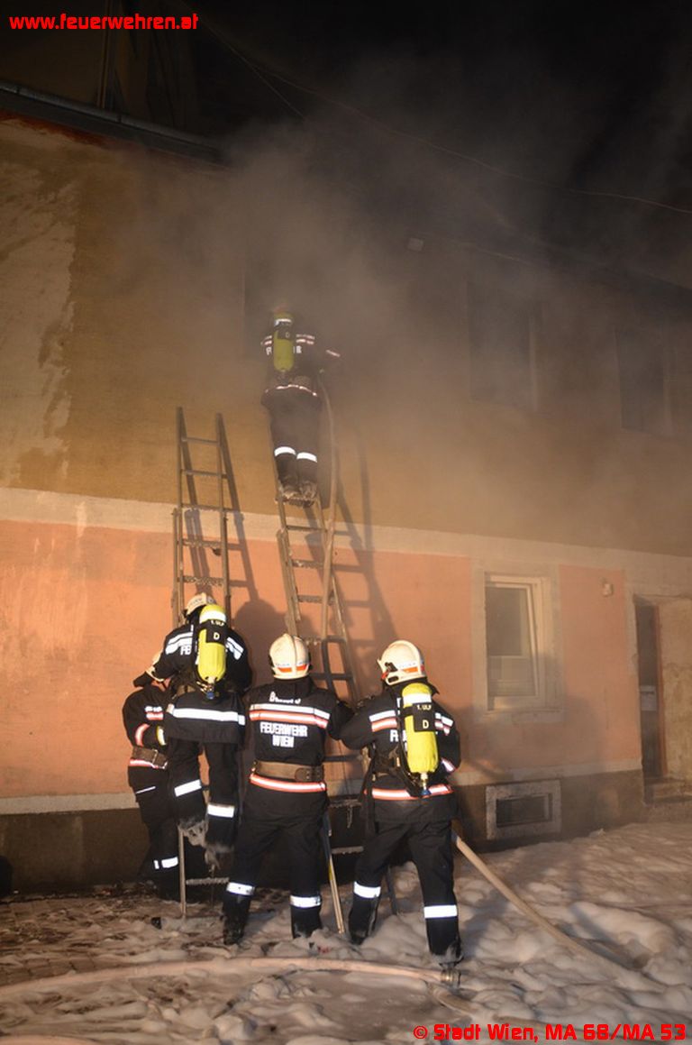 Der Brand konnte im Lauf des Vormittags gelöscht werden. Es wurden jedoch während der Nachlöscharbeiten zwei stark erwärmte Acetylengasflaschen gefunden, die laufend abgekühlt werden mussten. Um eine Explosion auszuschließen wurden die Flaschen von einem Beamten der Cobra aufgeschossen, damit der Inhalt kontrolliert ausbrennen konnte. Um niemanden zu gefährden, wurde der gesamte Block von 18 Wohnobjekten vorübergehend evakuiert, alle Betroffenen konnten inzwischen wieder in ihre Wohnungen zurück. Der Katastrophenzug der Wiener Rettung war ebenfalls vor Ort. Als letzte Maßnahmen werden noch Sicherungsarbeiten in Absprache mit der Baupolizei durchgeführt.
