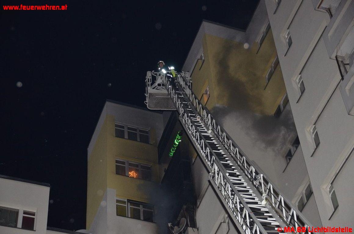 Als die Feuerwehr eintraf, hatte sich der Brand bereits auf das Wohnzimmer ausgebreitet. Die BewohnerInnen der betroffenen und der umliegenden Wohnungen konnten sich in der Zwischenzeit selbständig in Sicherheit bringen und wurden während des Einsatzes durch den Katastrophenzug der Wiener Berufsrettung versorgt. Der Brand konnte rasch gelöscht werden. Die Brandwohnung ist jedoch nicht mehr benutzbar. Daher wurde für die betroffene Familie vom Dezernat für Sofortmaßnahmen ein Ersatzquartier zur Verfügung gestellt.