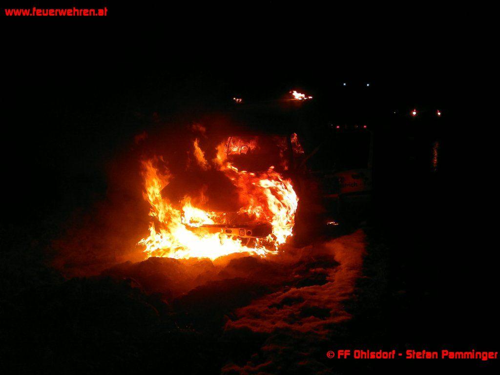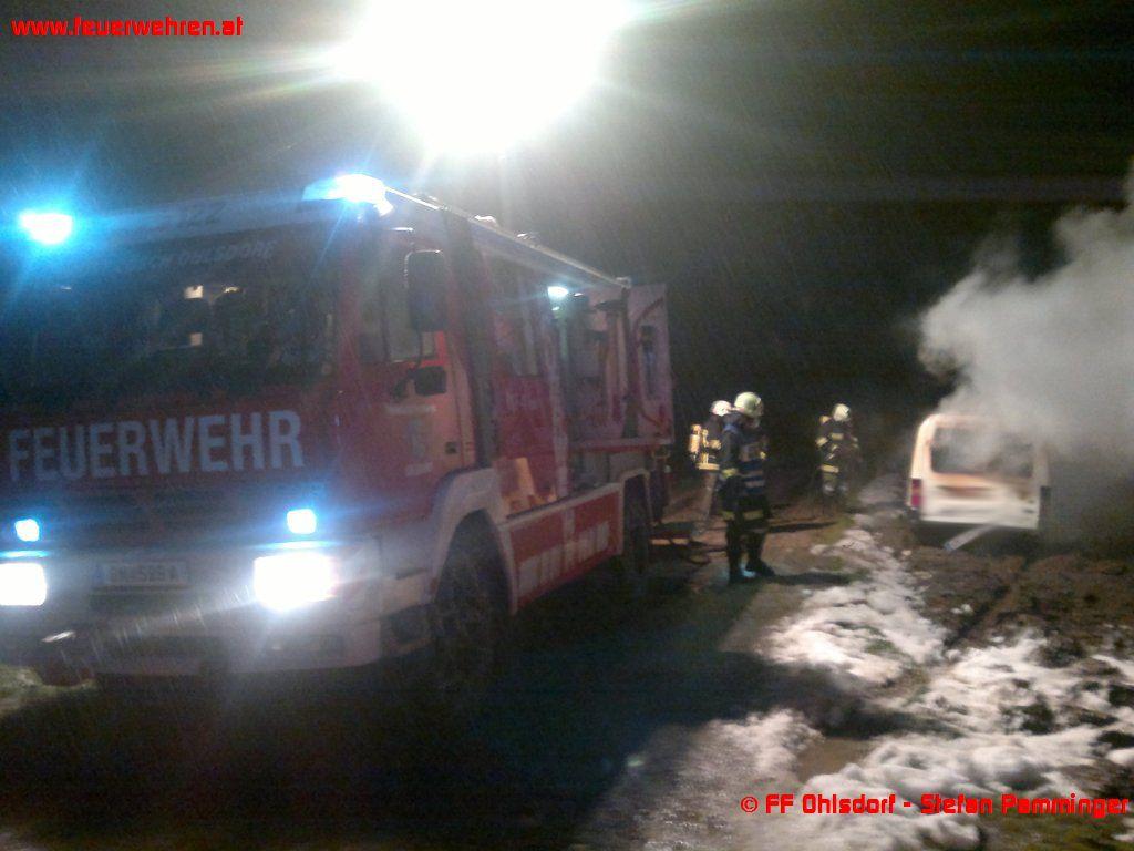 Über die Landeswarnzentrale Linz wurde die Feuerwehr Ohlsdorf am Sonntag, 23. Dezember 2012 um 04.49 Uhr zu einem Fahrzeugbrand zwischen Ehrendorf und Edlach alarmiert.