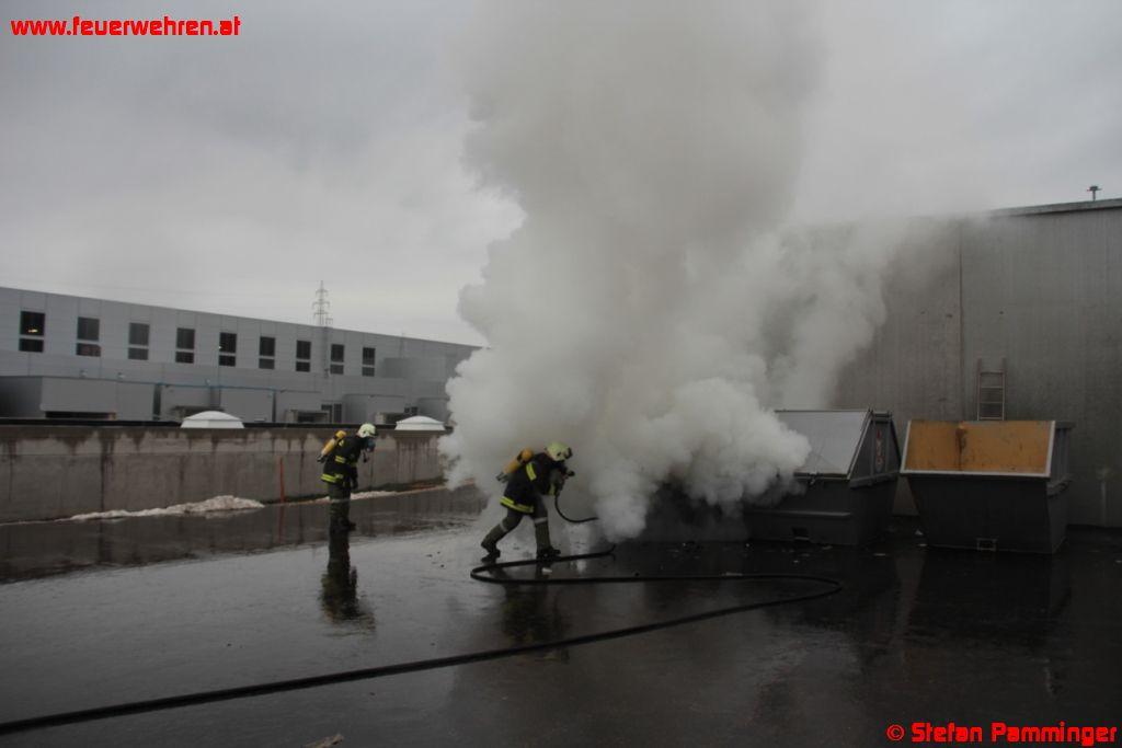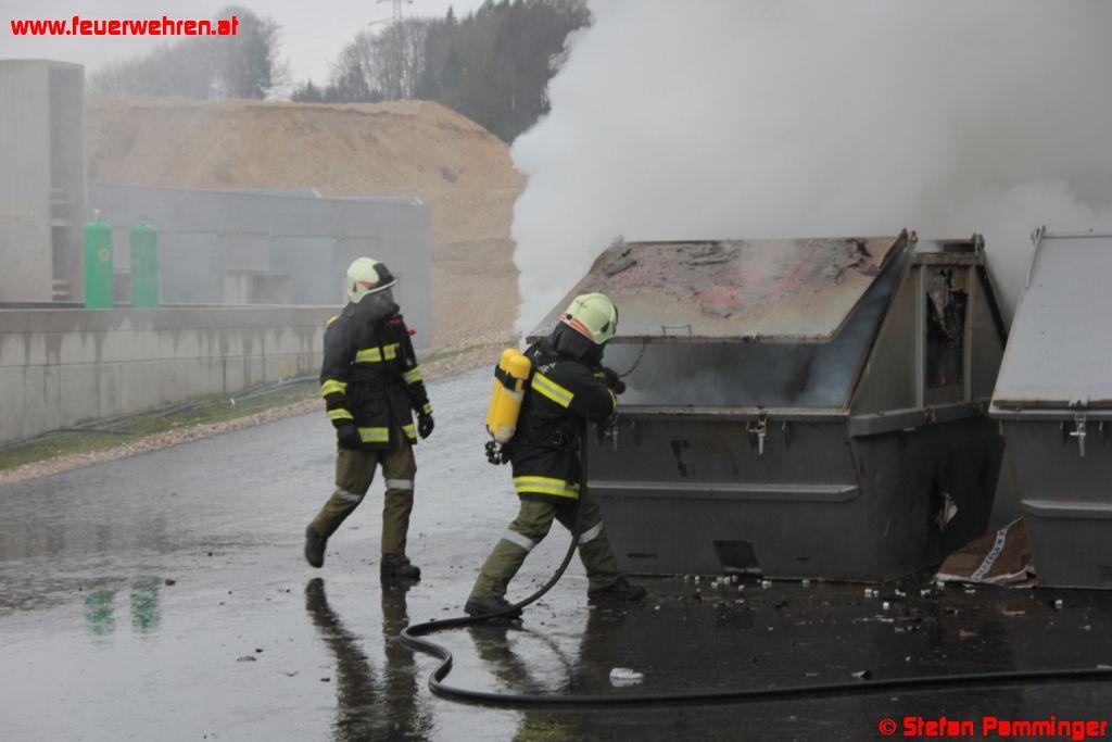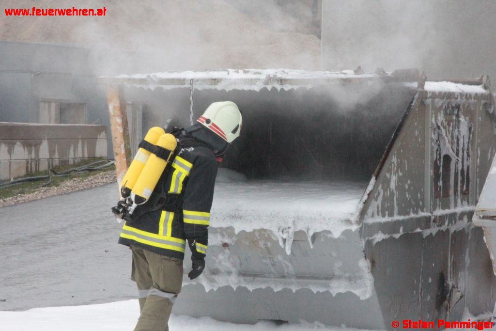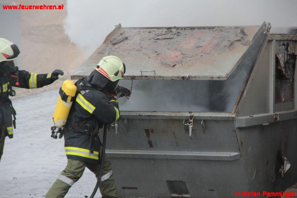 Unter schwerem Atemschutz wurde der Containerbrand mit einem Strahlrohr und einem Schaumrohr abgelöscht. Am Ende des Einsatzes wurde der Container mit Wasser befüllt um sicher zu stellen, dass alle Glutnester erreicht werden. Nach Rücksprache mit dem Brandschutzbeauftragten der Firma wurde eine Selbstentzündung als Ursache erhoben. Die Aufnahme wurde von der Polizei Gmunden durchgeführt.