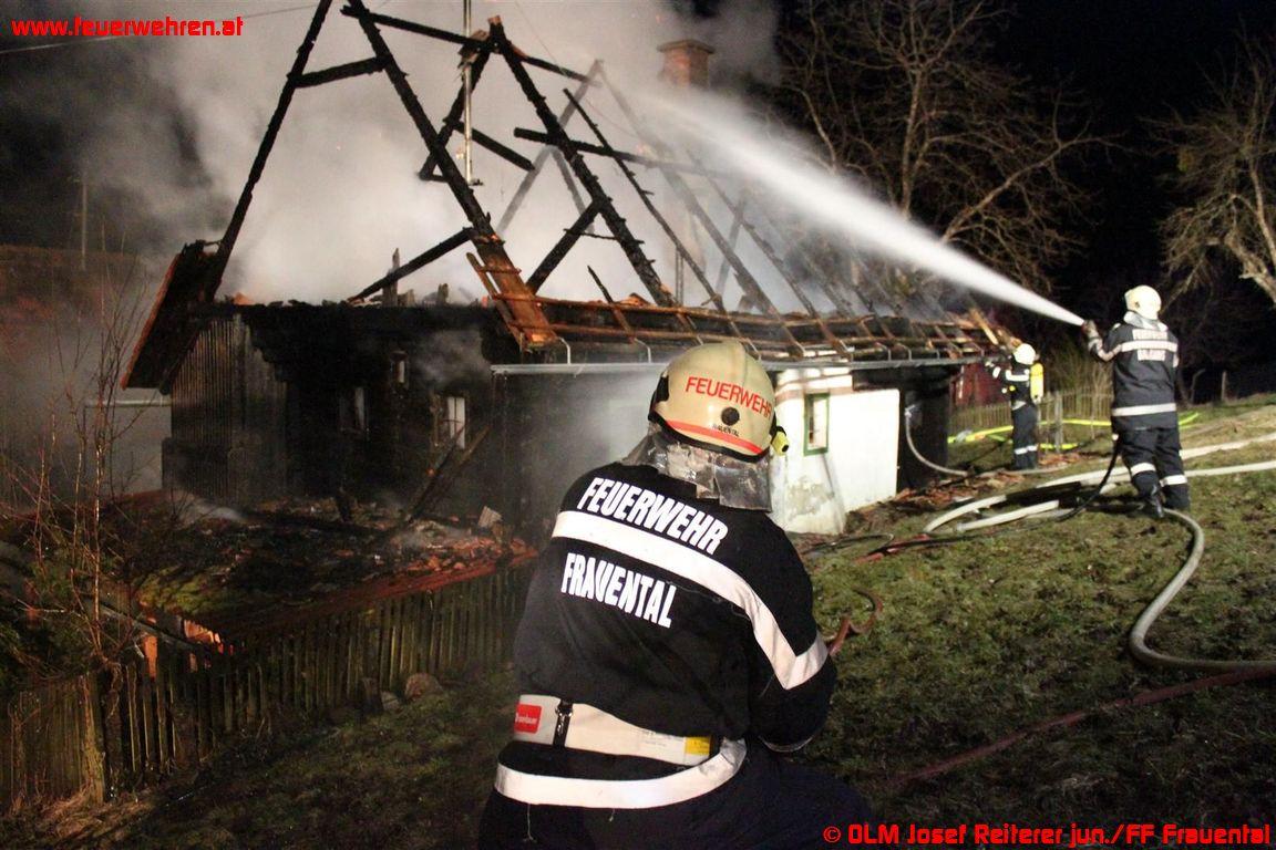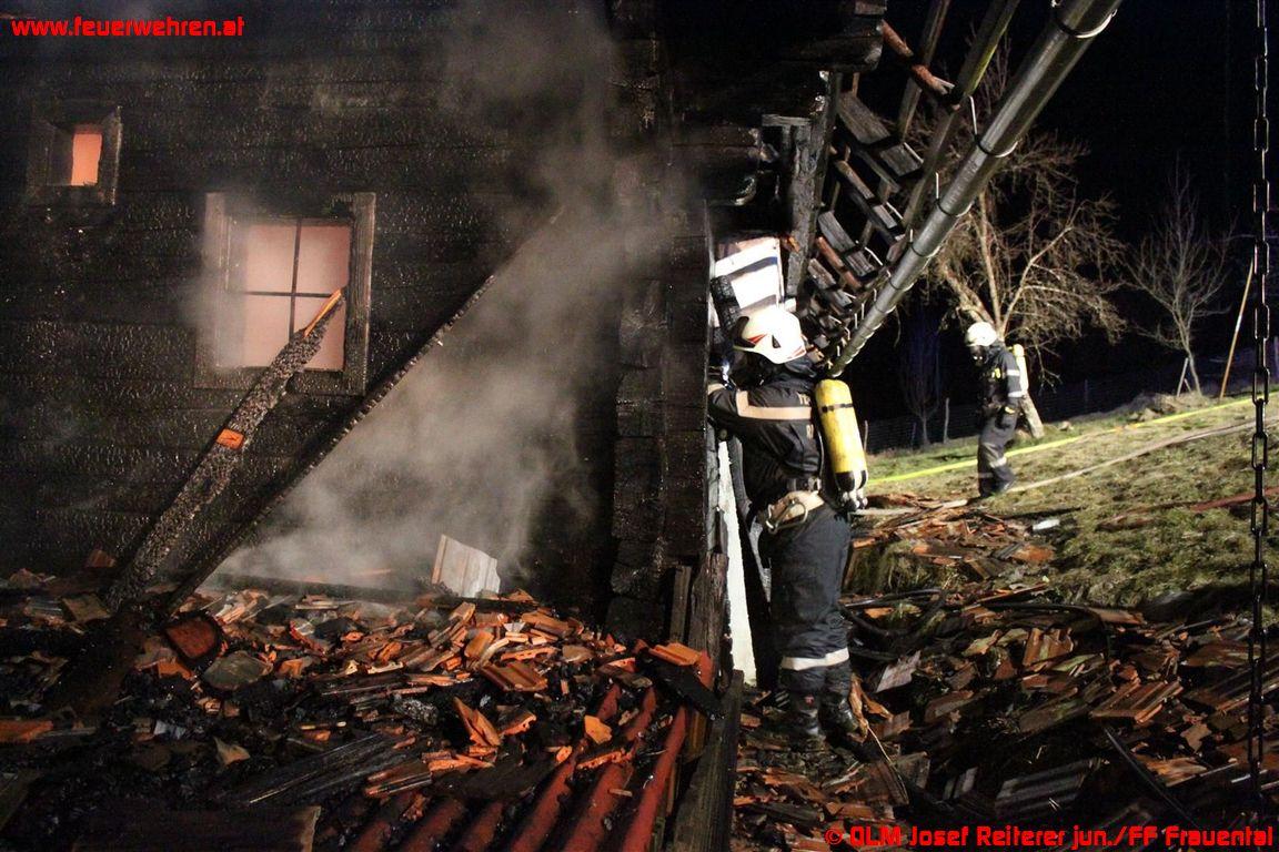 Da bereits Teile der Decke des Gebäudes eingestürzt waren, konnte Einsatzleiter HBI Ernst Größbauer, Kommandant der FF Bad Gams, keinen Atemschutztrupp mehr zur Menschenrettung in das Haus schicken, zu groß wäre die Gefahr gewesen, dass die Einsatzkräfte unter den Trümmern begraben worden wären. Daher beschränkte sich die Arbeit der Einsatzkräfte auf Löscharbeiten von außen unter schwerem Atemschutz. Zur Sicherstellung der Wasserversorgung und um genügend Atemschutzreserve vor Ort zu haben wurden noch die Feuerwehren Wildbach und Deutschlandsberg nachgefordert.