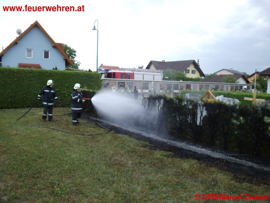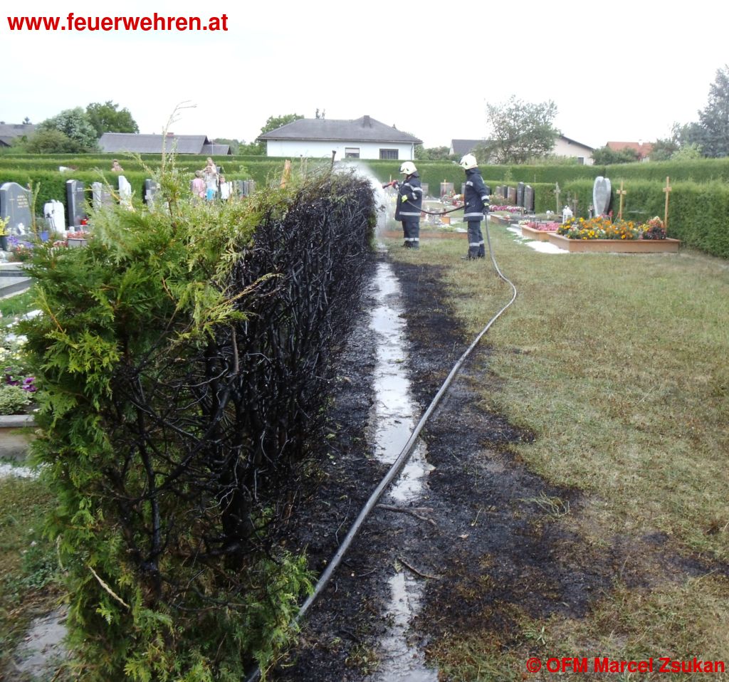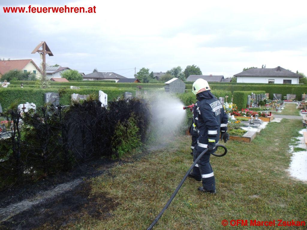 Heckenbrand beim Friedhof Fernitz“ lautete die Alarmmeldung seitens der Landesleitzentrale „Florian Steiermark“ am frühen Abend des 29. Juli 2013. Noch während der Anfahrt zum Einsatzort versuchten beherzte Passanten den Brand mittels Gießkannen einzudämmen, was glücklicherweise auch gelang.