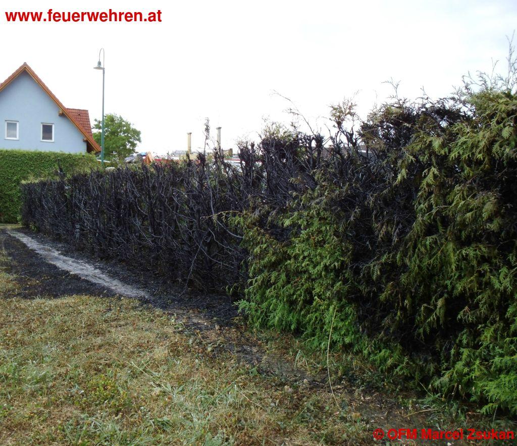 Beim Eintreffen waren ca. 20m der betroffenen Hecke durch die anhaltende Trockenheit in Brand geraten, welchen die Einsatzkräfte mittels HD Rohr schnell unter Kontrolle brachten.