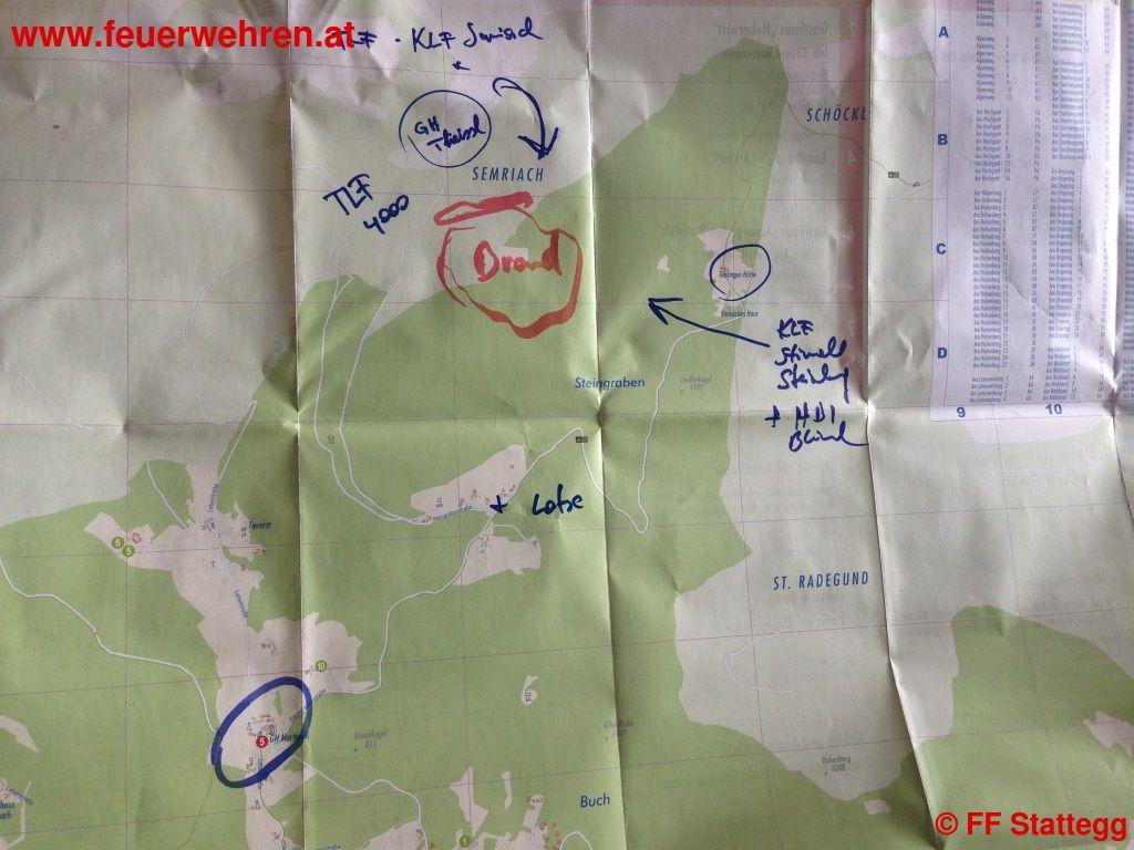 Am 09.08.2013 ereignete sich um 06:50 Uhr, vermutlich wegen eines Blitzschlages auf zirka 1.200 m Seehöhe, ein Waldbrand am Schöckl. Kurz nach Alarmierung der Feuerwehren Stattegg und Semriach verständigte der Einsatzleiter OBI Christian Dielacher von der FF Stattegg sofort den Tanklöschzug des Abschnittes 6 vom Bereichsfeuerwehverband Graz-Umgebung. Hier rückten sofort alle 12 Feuerwehren des Abschnittes 6 laut Ausrückordnung zum Einsatzort aus.