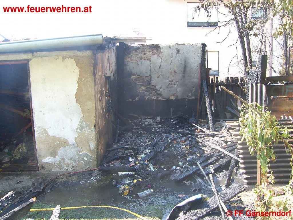 Beim Eintreffen der Feuerwehr stand der Schuppen bereits im Vollbrand. Teile des betreffenden Objektes sind bereits niedergebrannt, das Feuer drohte auf das Nebengebäude überzugreifen. Mittels zweier Löschleitungen und unter Atemschutz konnte einerseits der Brand unter Kontrolle gebracht aber auch das angrenzende Gebäude vor dem Übergreifen des Feuers geschützt werden.