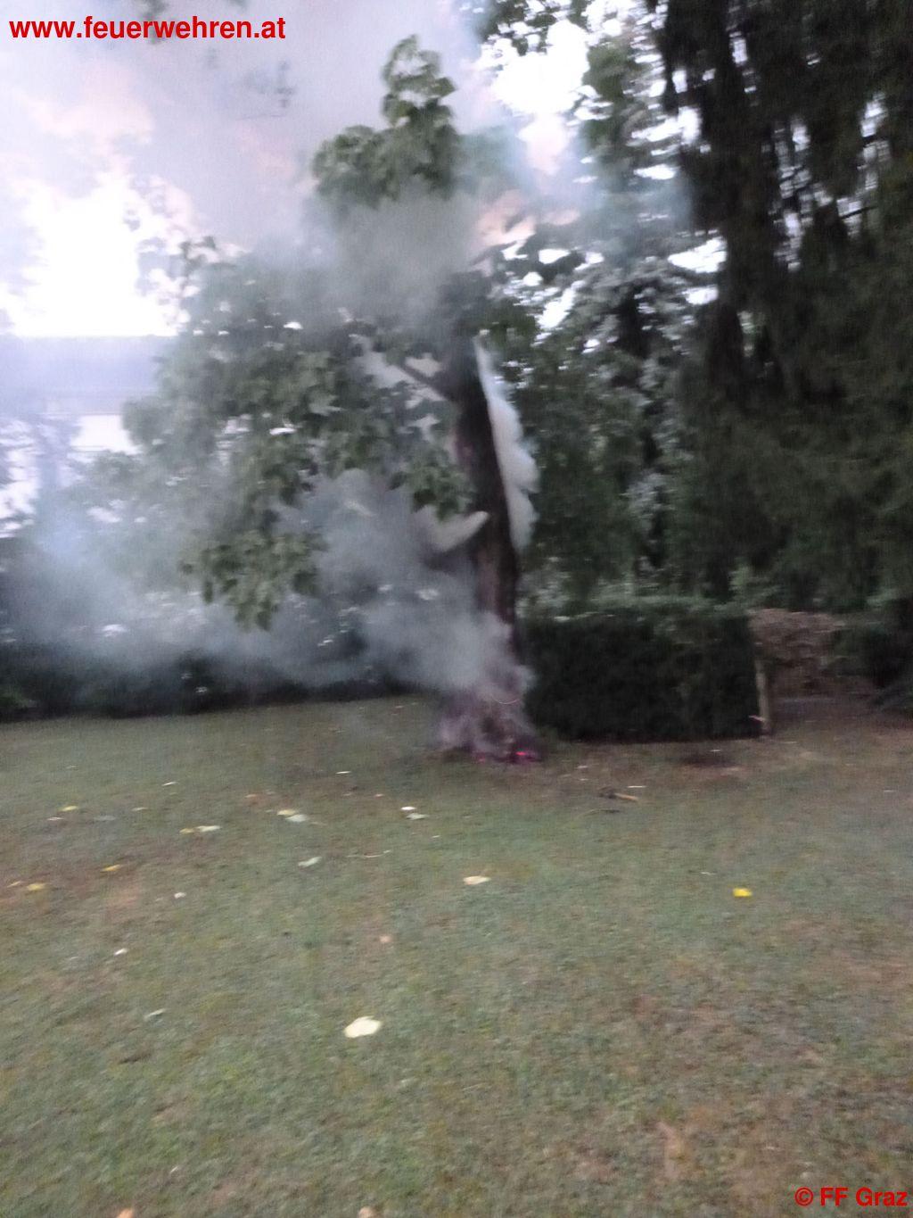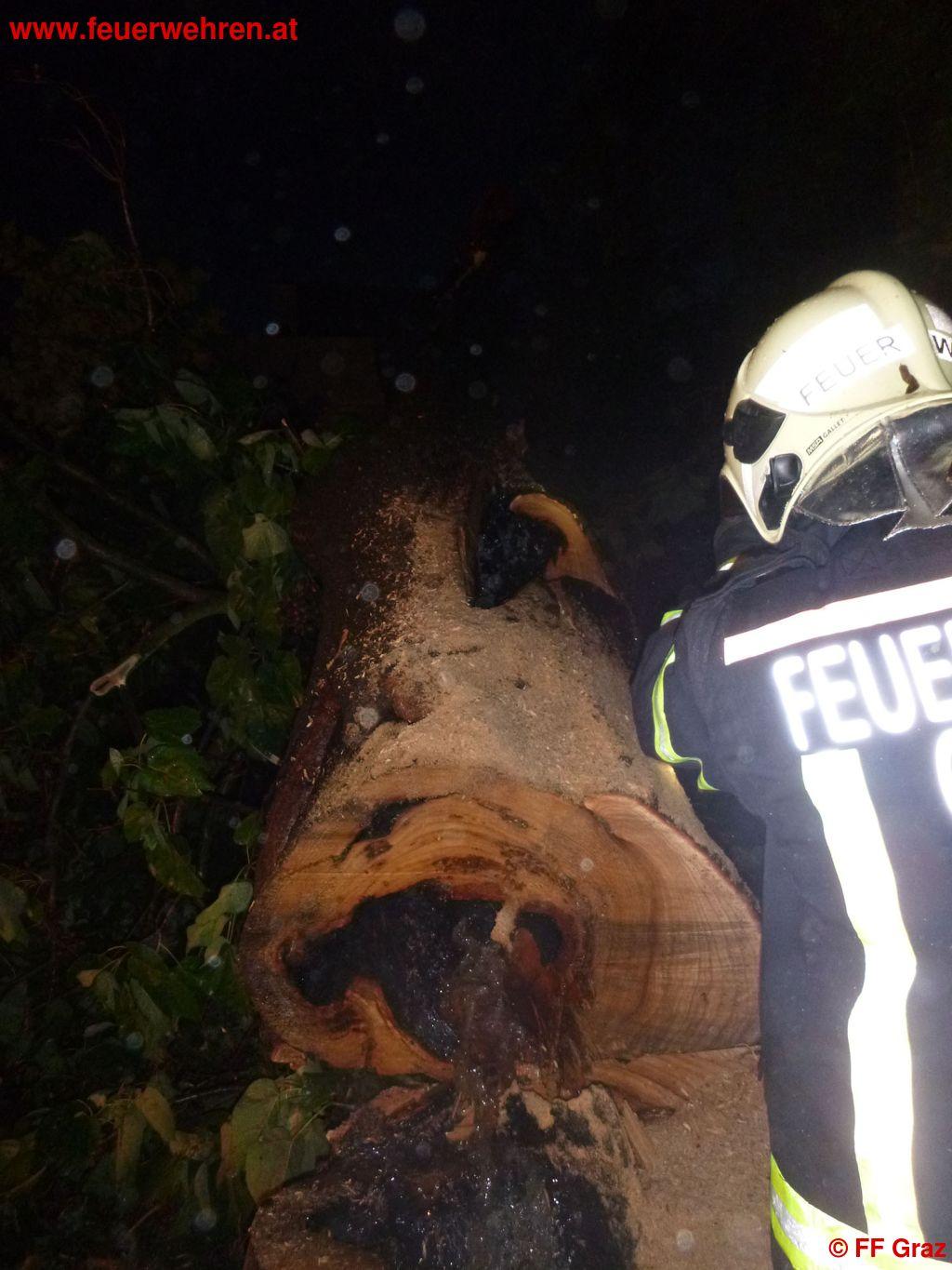 Da für Freitagnacht schwere Unwetter vorhergesagt wurden, stellte die FF Graz das Tanklöschfahrzeug (TLF) sowie das Kleinrüstfahrzeug (KRF) um 18:30 in Dienst. Der Starkregen inklusive Blitz und Donner lies nicht lange auf sich warten. Um 19:24 wurde das TLF mit dem Alarmstichwort „Brand eines Baumes“ in die Heinrichstraße gerufen.