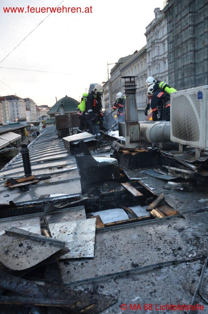 Das Feuer wurde unter Atemschutz sowohl im Innen- als auch im Außenangriff bekämpft und die Brandintensität konnte bereits nach kurzer Zeit gebrochen werden. Für die Löscharbeiten musste vorerst die Linke Wienzeile ab dem Getreidemarkt gesperrt werden; später konnte der Verkehr auf einer Spur wieder freigegeben werden. Das Feuer hatte sich im Bereich der Dachkonstruktion auch auf den Bereich des zweiten Lokals ausgebreitet, welches im selben Marktstand untergebracht ist.