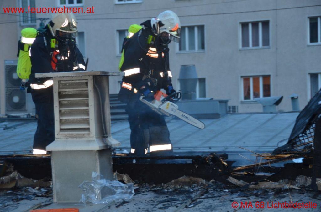 Um die Löschwirkung des Wassers zu erhöhen, wurde diesem ein geringer Anteil Schaummittel beigemengt, wodurch der Brand schließlich rasch abgelöscht werden konnte. Viel aufwändiger gestalteten sich die umfangreichen Nachlöscharbeiten am Dach. Dieses musste mit Hilfe von Kettensägen an mehreren Stellen geöffnet werden, um alle Glutnester ablöschen zu können. Zusätzlich war es notwendig diverse Dachaufbauten der Lüftungsanlage aufgrund der Brandeinwirkung zu demontieren und vom Dach zu entfernen. Verletzt wurde bei diesem Einsatz niemand.