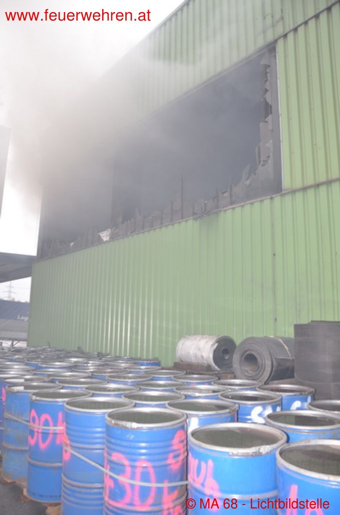 Durch die rasche Ausbreitung des Brandes kam zu einem Flammenaustritt auf der westlichen Seite der Lagerhalle. Zur Brandbekämpfung sowie zur Verhinderung des Brandüberschlages auf benachbarte Gebäude wurden mehrere Löschleitung im Aussenangriff sowie im Innenangriff unter Atemschutz vorgenommen. Um den Brand endgültig unter Kontrolle zu bringen wurde der umfangreiche Löschangriff zusätzlich mit Wasserwerfern und Löschschaum unterstützt.
