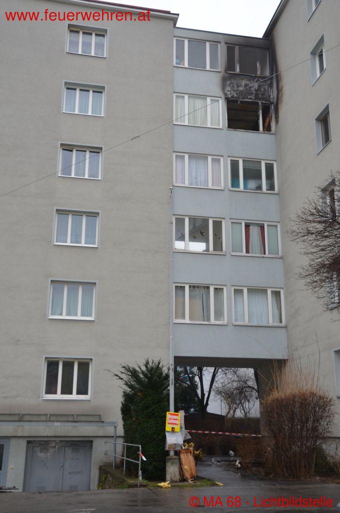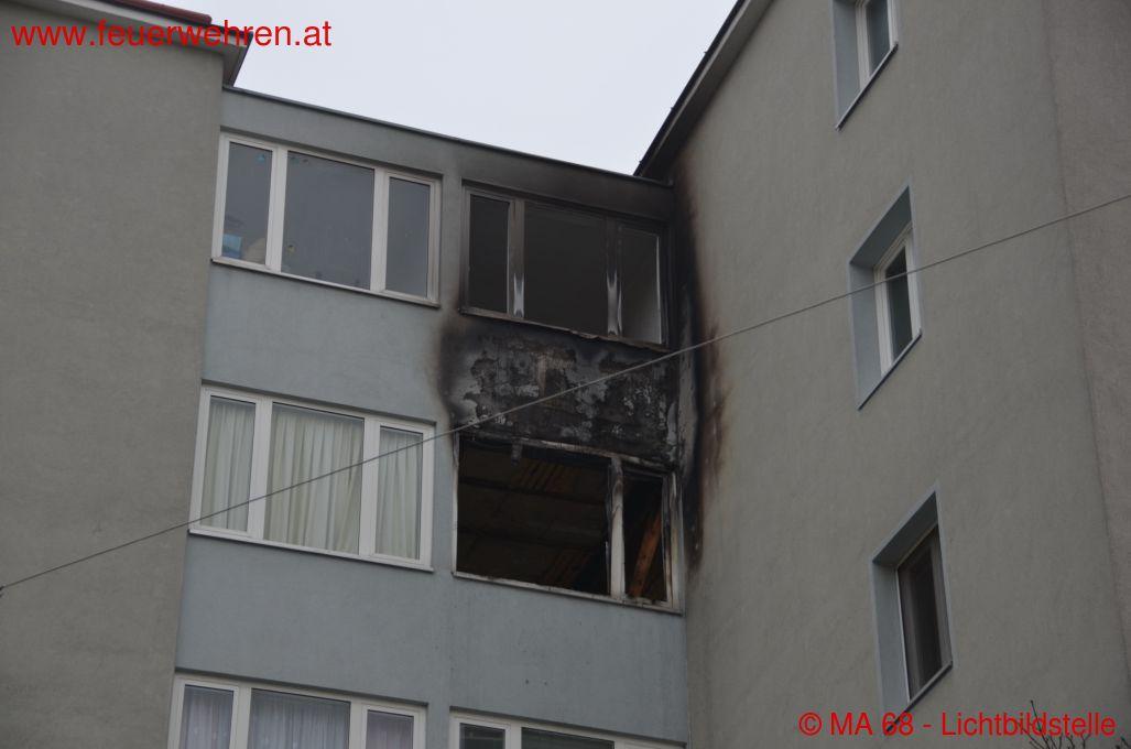 Aus bisher unbekannter Ursache war es auf einer verglasten Loggia einer Wohnung zu einem Brand gekommen, welcher sich relativ rasch auf das angrenzende Wohnzimmer ausbreitete.