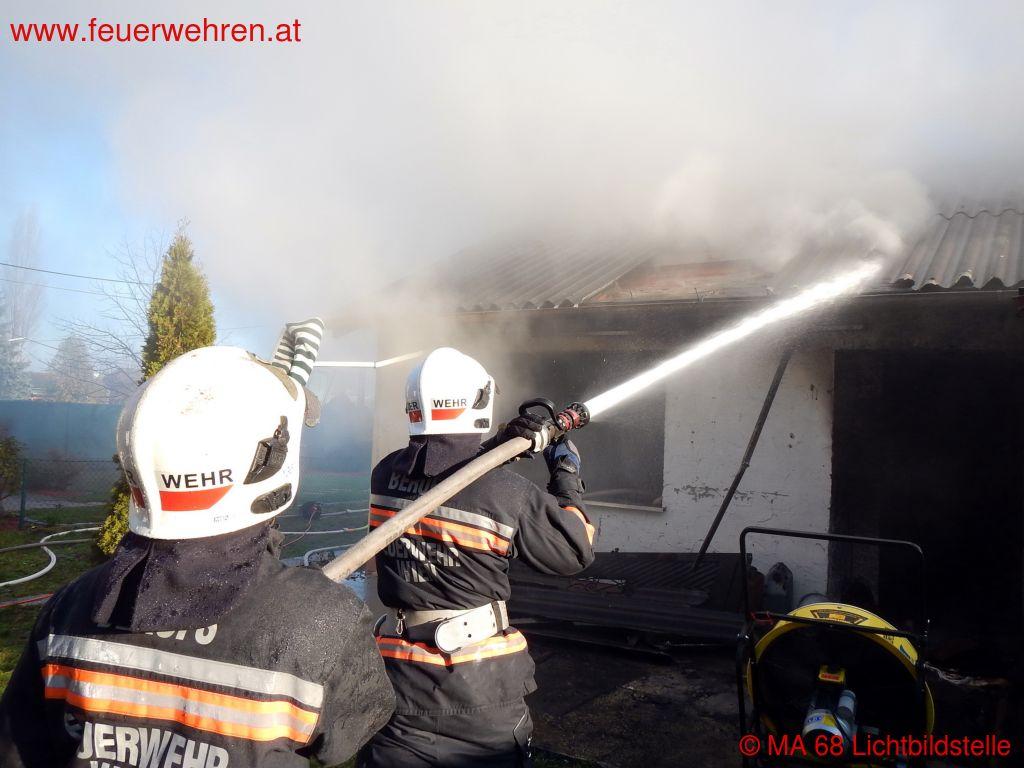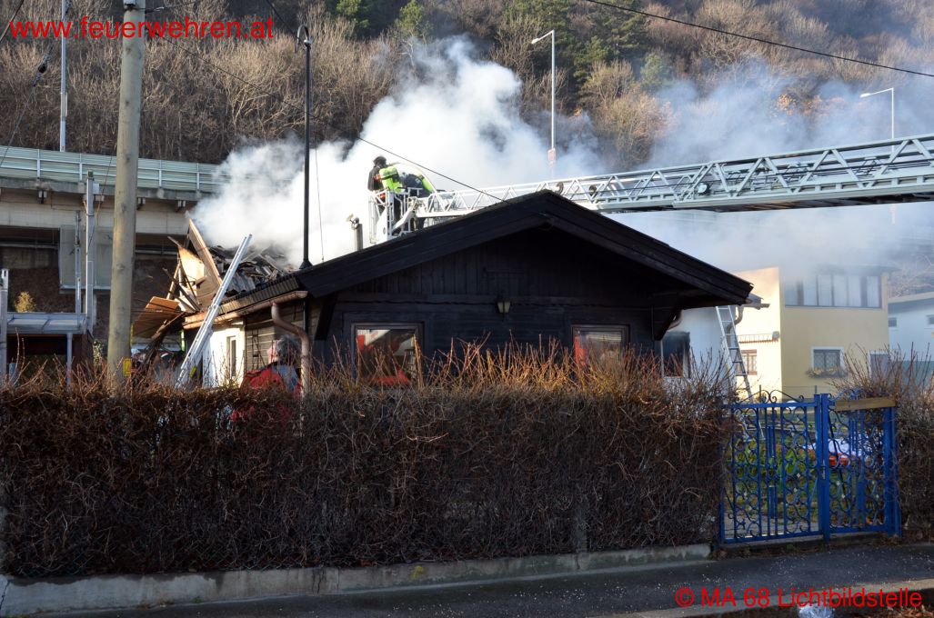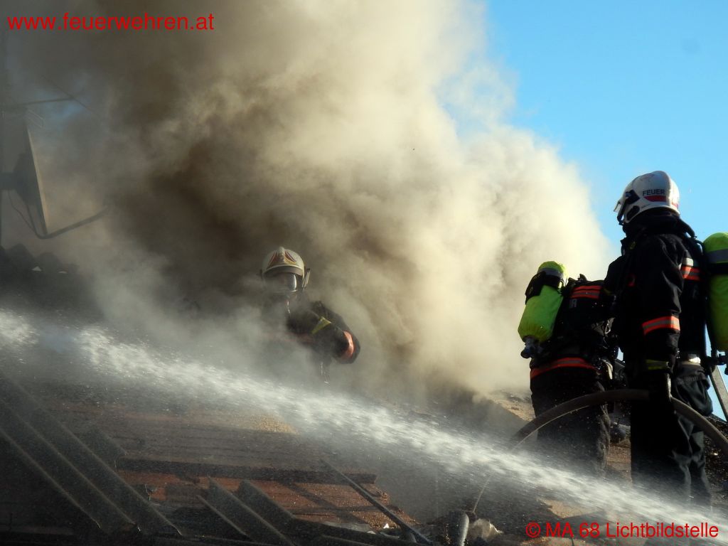 Als die ersten Einsatzkräfte der Berufsfeuerwehr Wien eintrafen, stand schon ein Teil des Hauses in Vollbrand und es wurde unverzüglich mit der Menschenrettung und Brandbekämpfung begonnen. Drei Personen und der Hund konnten rechtzeitig vor den Flammen in Sicherheit gebracht werden; die vierte Person konnte erst im Zuge der Brandbekämpfung unter Atemschutz im Haus aufgefunden werden. Nach der Bergung der Person konnte leider nur mehr der Tod festgestellt werden.