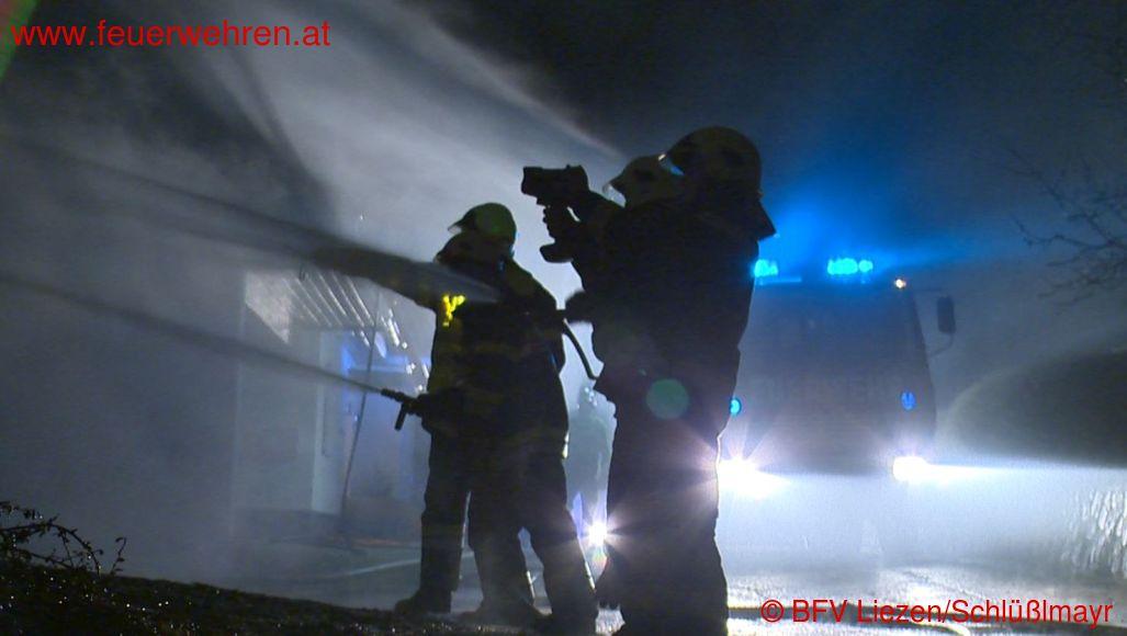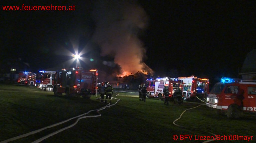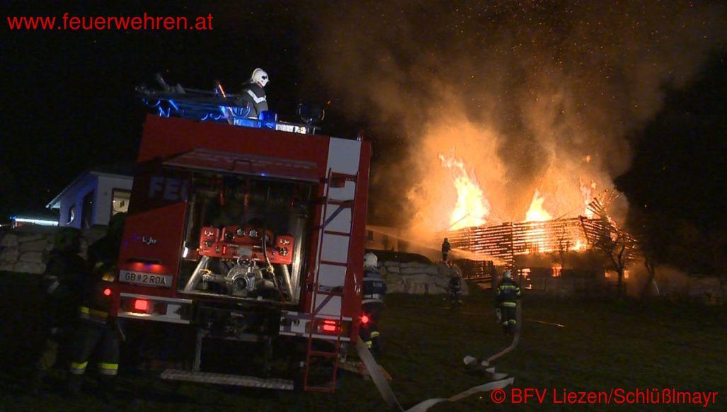 Ein Augenzeuge setzte einen Notruf ab, die Landesleitzentrale alarmierte sofort alle 13 Feuerwehren des Abschnittes Gröbming. Nachdem sich rund um das Brandobjekt mehrere Wohngebäude befanden, konzentrierten sich die Löscharbeiten auf das Schützen dieser Wohnhäuser.