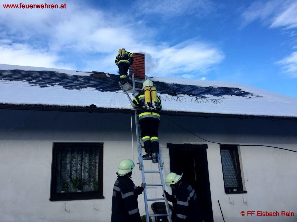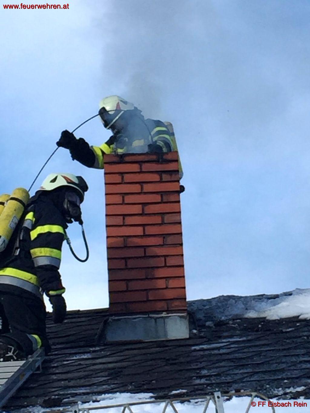 Die Landesleitzentrale Steiermark verständigte die Feuerwehren Eisbach Rein und Judendorf-Strassengel. Die Feuerwehr Judendorf-Strassengel rückte mit 3 Fahrzeugen und 12 Mann sofort zum Einsatzort aus. Nach der ersten Erkundung mittels der Wärmebildkamera konnte man sofort feststellen, dass der Kaminbrand bereits sehr fortgeschritten war.